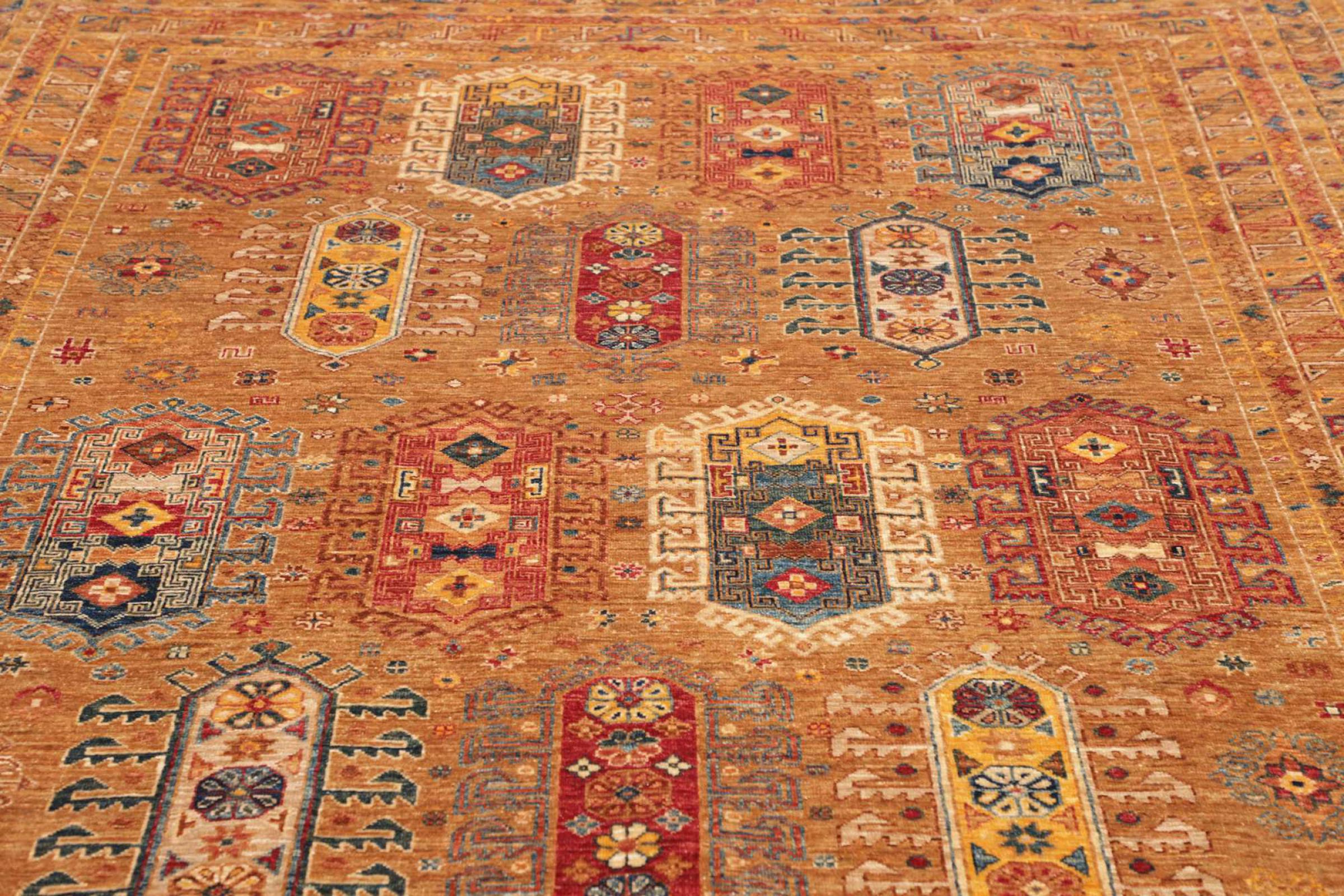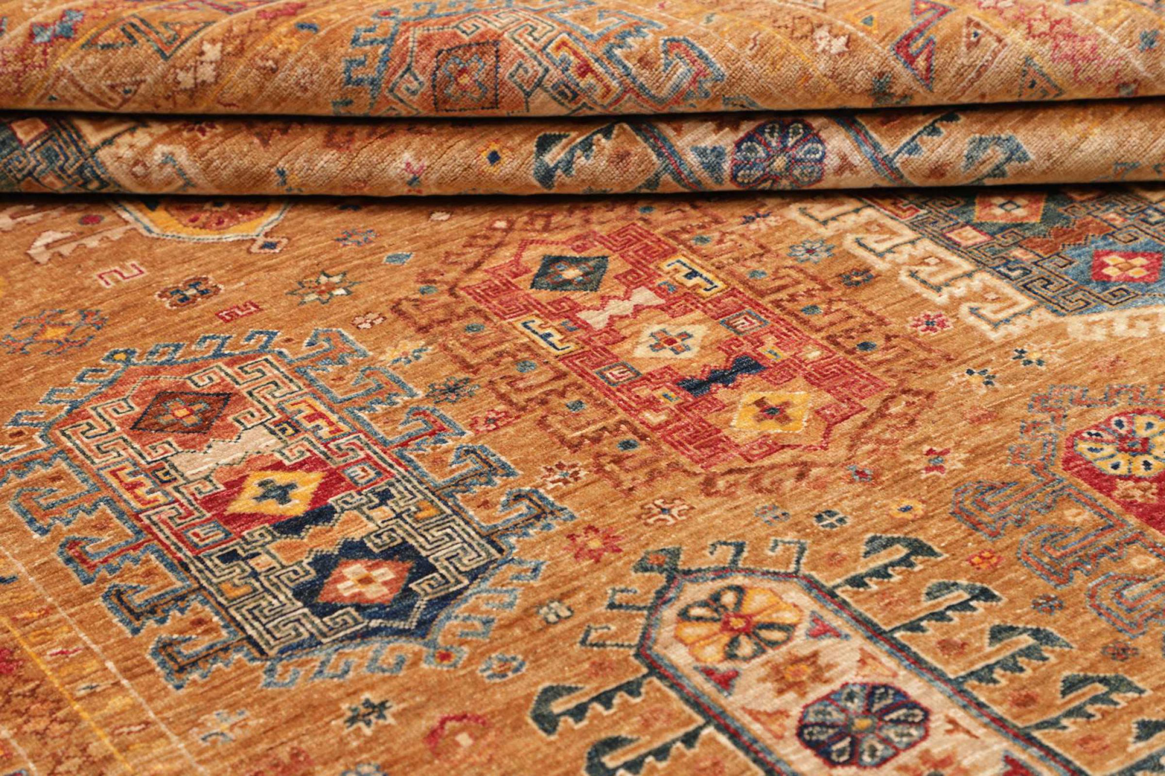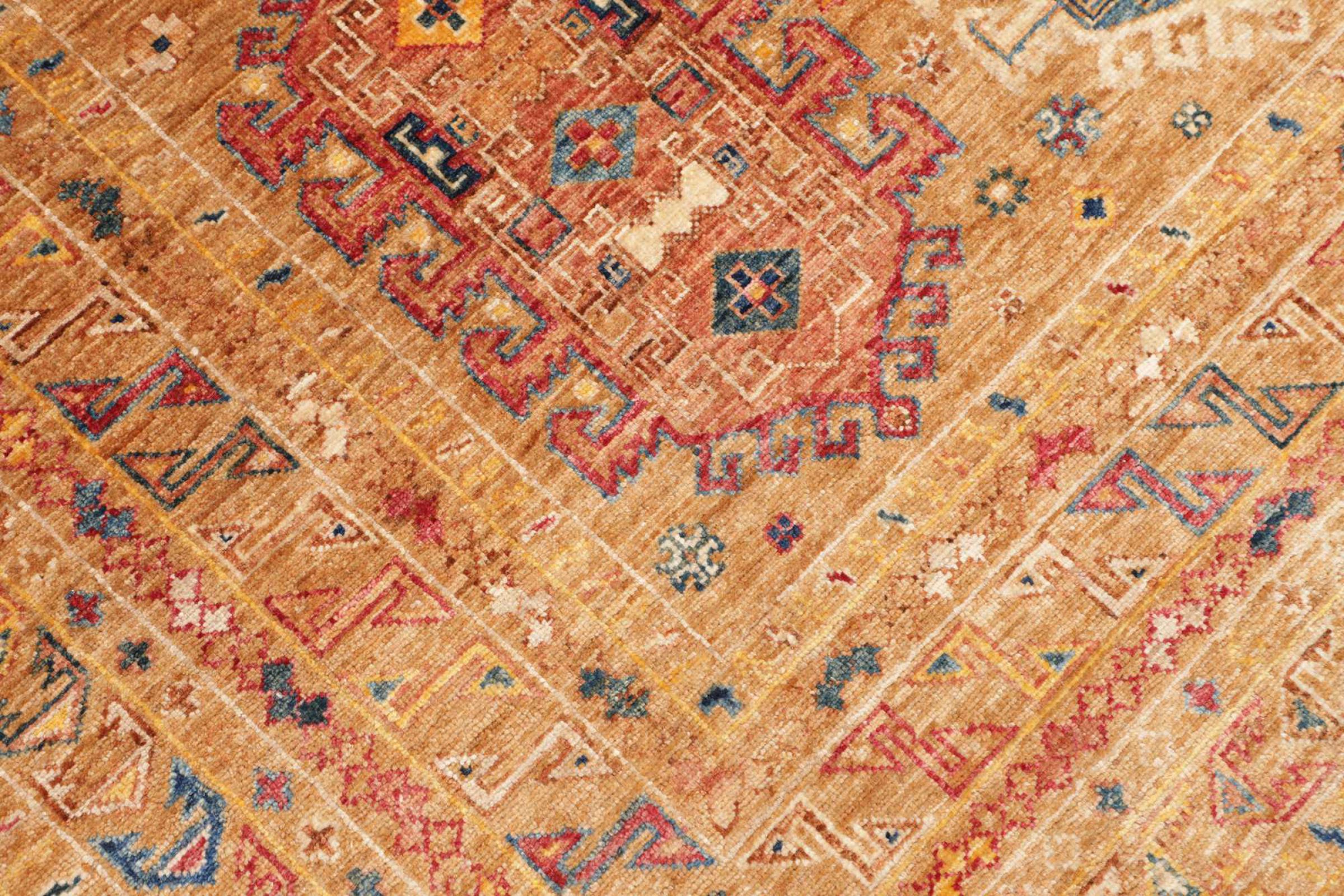 Acest covor este realizat din lână de oaie toartă manual de cea mai bună calitate. În Iran (fosta Persia), Afganistan și Pakistan în special, lâna este încă torsă manual înainte de a începe înnodarea propriu-zisă a covorului. Lâna s-a dovedit a fi un material natural și extrem de rezistent de-a lungul secolelor. Printre altele, are proprietăți de respingere a murdăriei și de izolare termică. În același timp, lâna este incomparabil de moale și are o strălucire naturală.