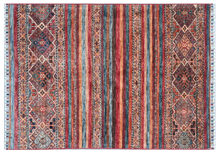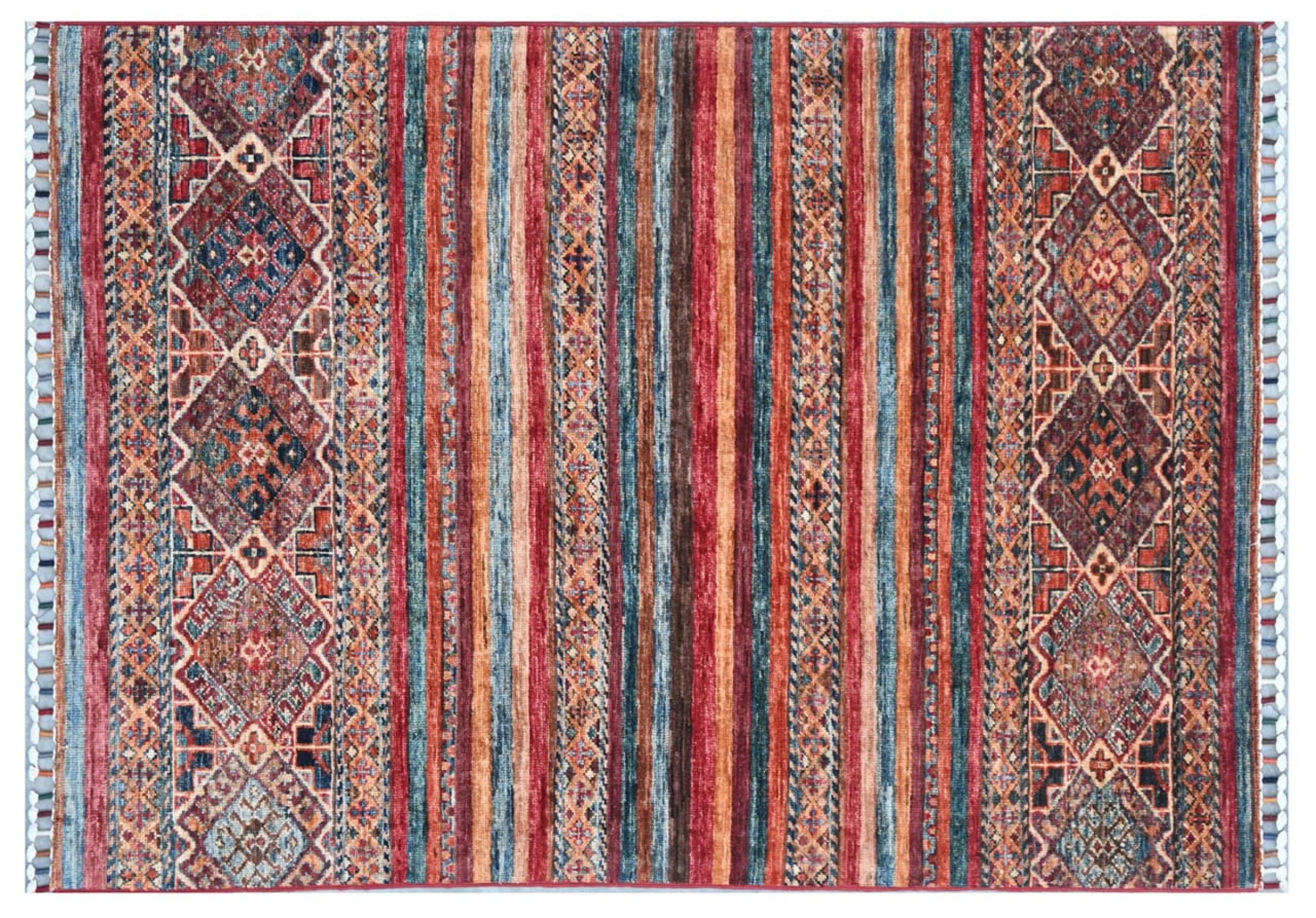 Covor Nr.: 299385004476842 Mărime: 140x100 cm Grosime: cca. 5 mm Noduri: 144 000 - 180 000 / m² Prelucrare: Lucrate de mână Catifeaua: Lână toarsă manual Urzeala: Bumbac Origine: Afganistan Vechime: Nou Greutate: cca. 5 kg În stoc: Unic - Doar 1 în stoc