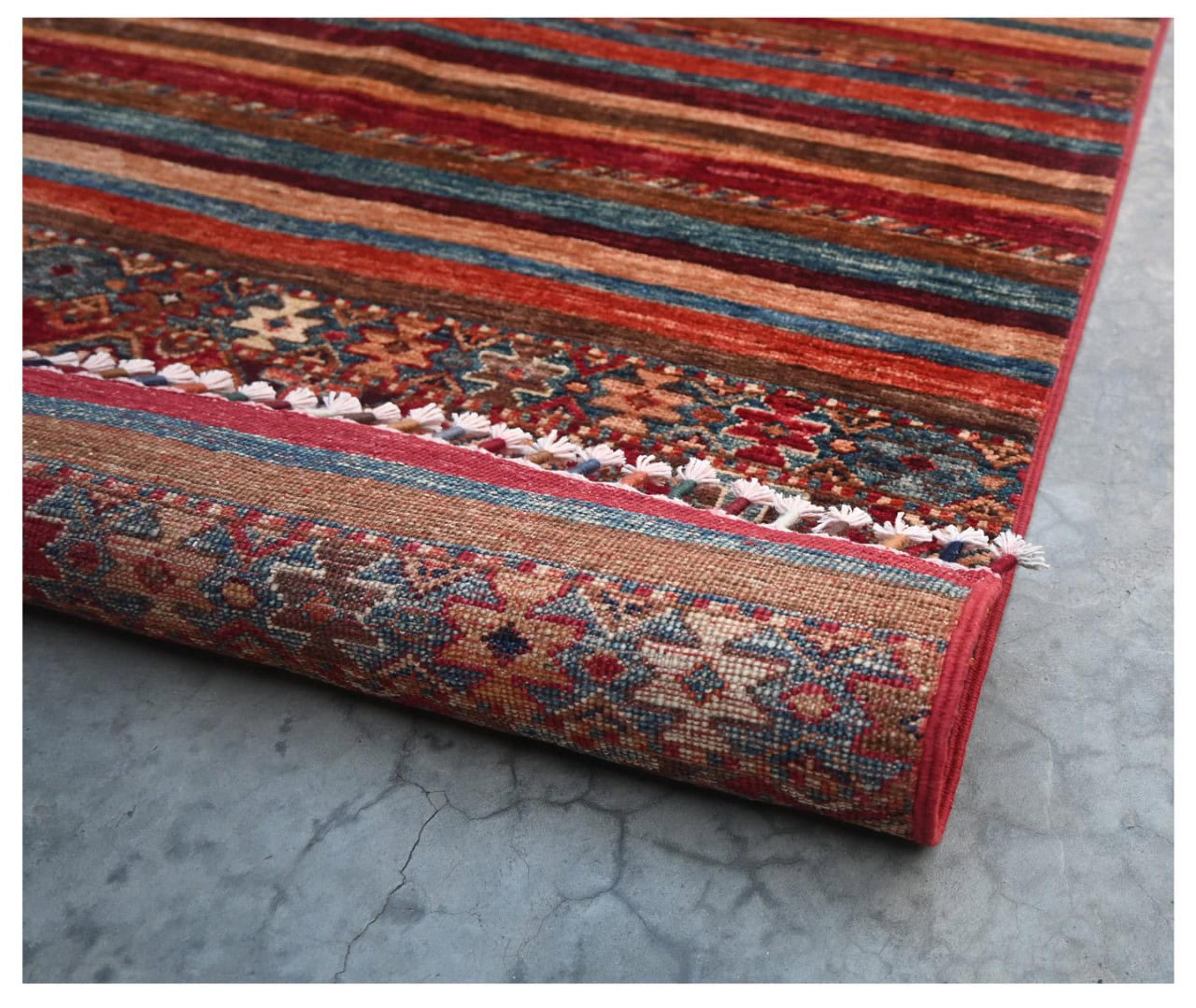 Acest covor este realizat din lână de oaie toartă manual de cea mai bună calitate. În Iran (fosta Persia), Afganistan și Pakistan în special, lâna este încă torsă manual înainte de a începe înnodarea propriu-zisă a covorului. Lâna s-a dovedit a fi un material natural și extrem de rezistent de-a lungul secolelor. Printre altele, are proprietăți de respingere a murdăriei și de izolare termică. În același timp, lâna este incomparabil de moale și are o strălucire naturală.