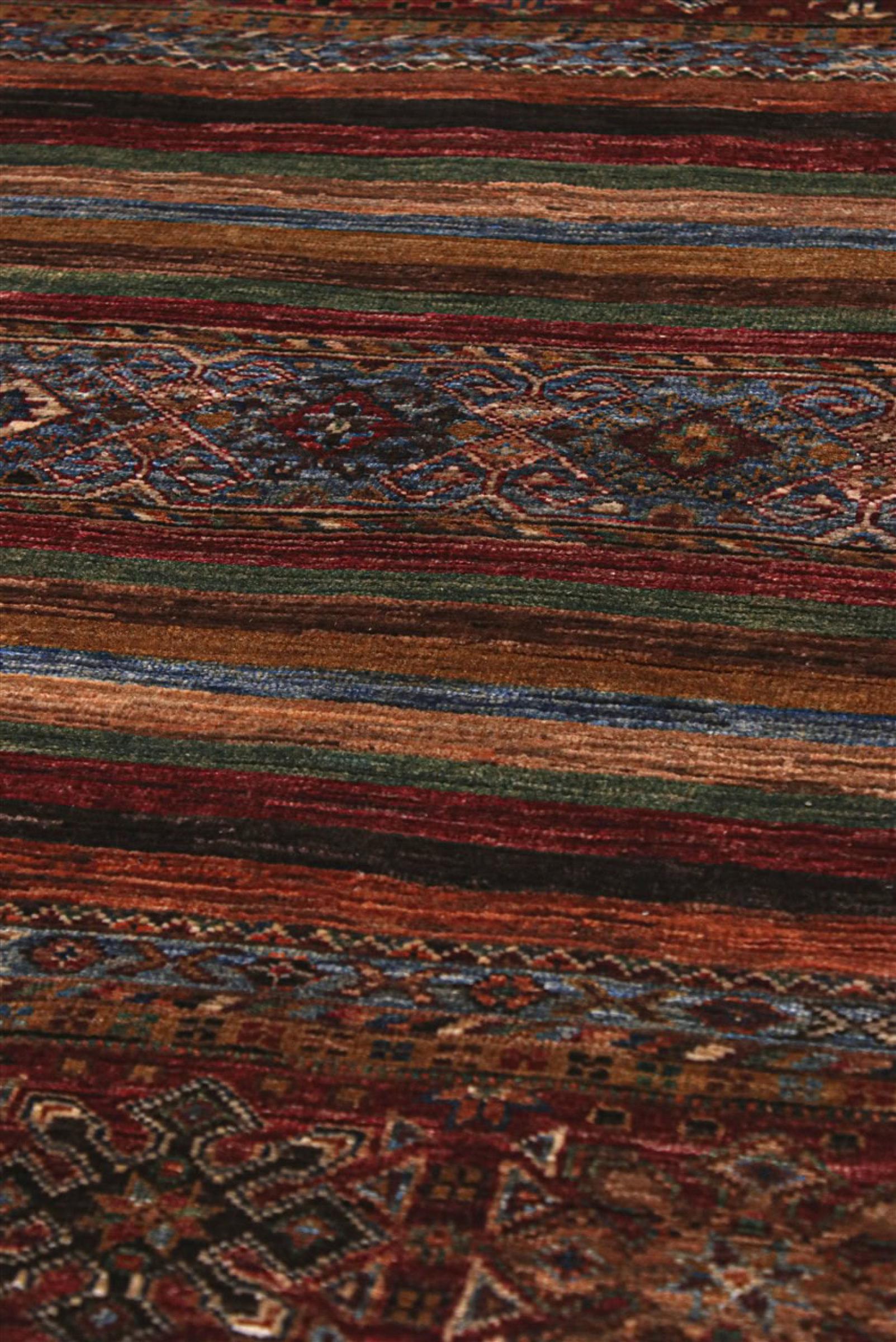 Acest covor este realizat din lână de oaie toartă manual de cea mai bună calitate. În Iran (fosta Persia), Afganistan și Pakistan în special, lâna este încă torsă manual înainte de a începe înnodarea propriu-zisă a covorului. Lâna s-a dovedit a fi un material natural și extrem de rezistent de-a lungul secolelor. Printre altele, are proprietăți de respingere a murdăriei și de izolare termică. În același timp, lâna este incomparabil de moale și are o strălucire naturală.