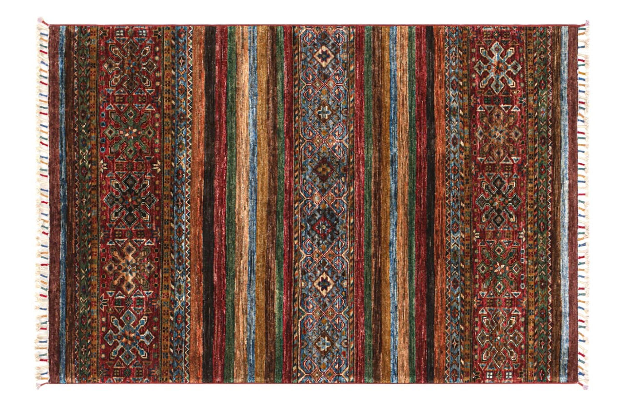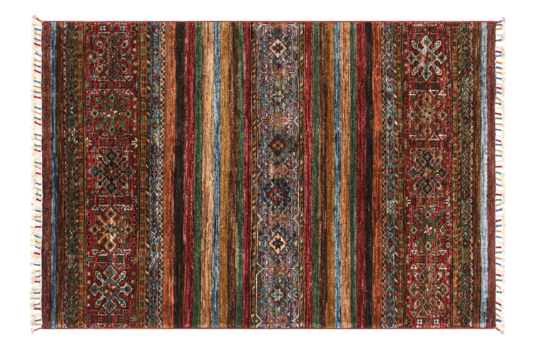 Covor Nr.: 299080008941618 Mărime: 152x105 cm Grosime: cca. 5 mm Noduri: 144 000 - 180 000 / m² Prelucrare: Lucrate de mână Catifeaua: Lână toarsă manual Urzeala: Bumbac Origine: Afganistan Vechime: Nou Greutate: cca. 6 kg În stoc: Unic - Doar 1 în stoc