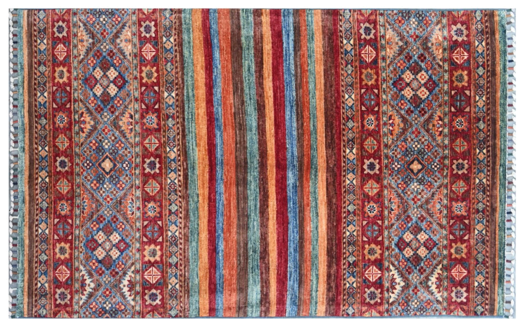 Covor Nr.: 299375005244476 Mărime: 166x101 cm Grosime: cca. 5 mm Noduri: 144 000 - 180 000 / m² Prelucrare: Lucrate de mână Catifeaua: Lână toarsă manual Urzeala: Bumbac Origine: Afganistan Vechime: Nou Greutate: cca. 6 kg În stoc: Unic - Doar 1 în stoc