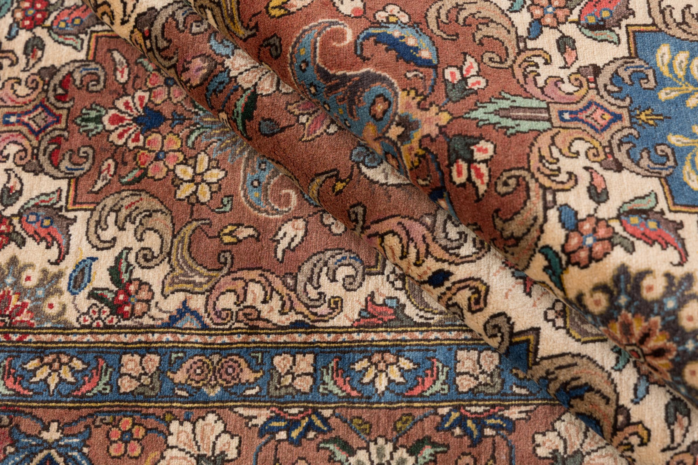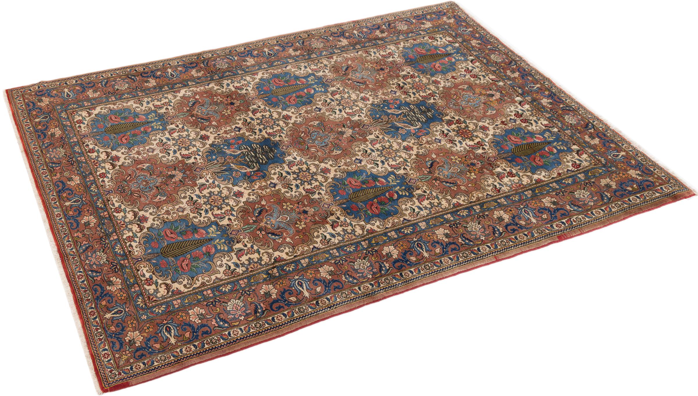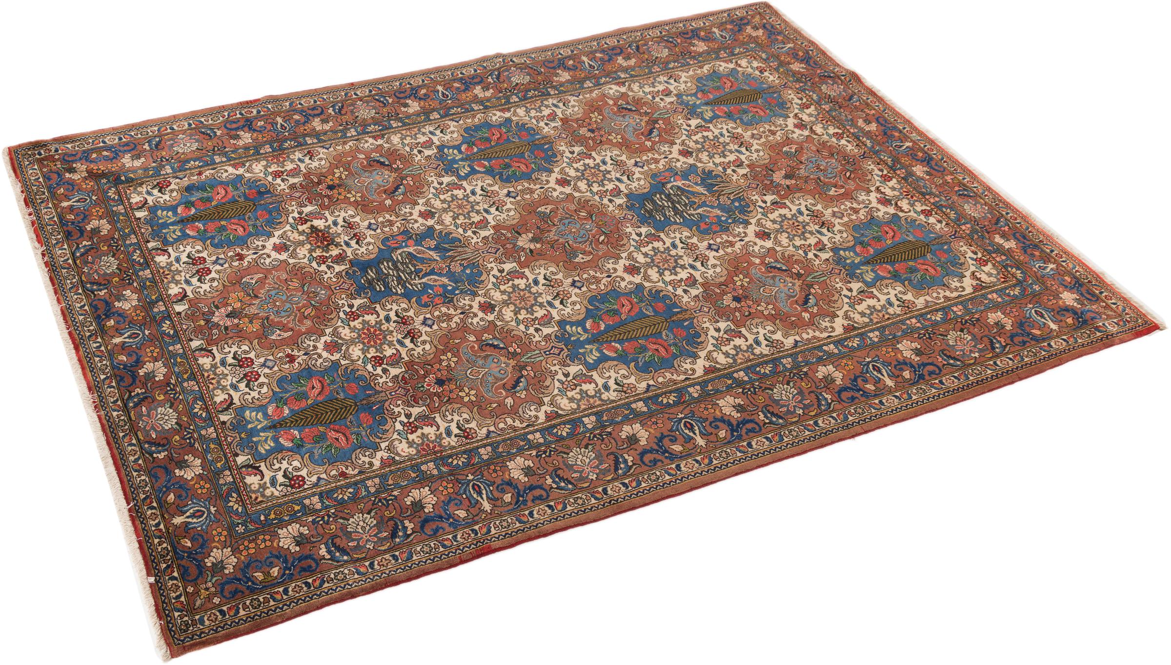 Covor Nr.: 29827900749 Mărime: 254x163 cm Grosime: cca. 12 mm Noduri: 320 000 - 360 000 / m² Prelucrare: Lucrate de mână Catifeaua: Lână toarsă manual Urzeala: Bumbac Origine: Persien / Iran Vechime: Nou Greutate: cca. 14 kg De asemenea cunoscut ca si Baktjar În stoc: Unic - Doar 1 în stoc