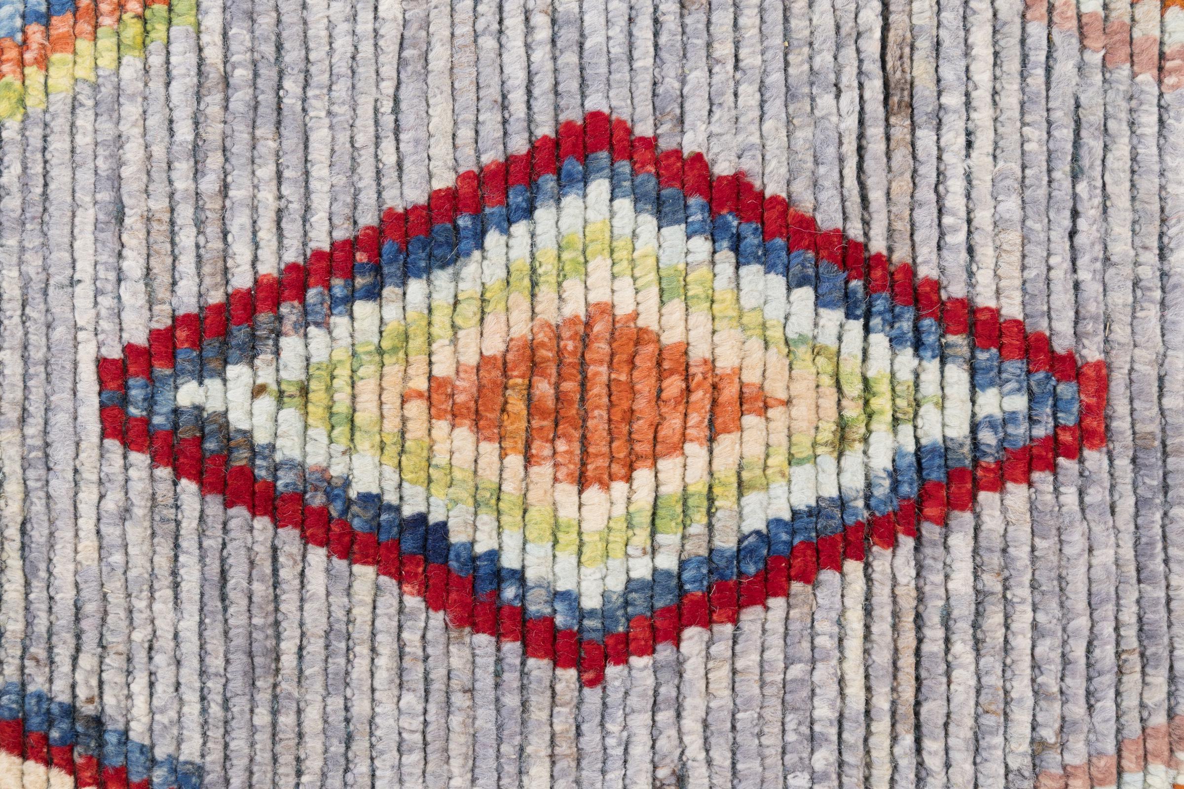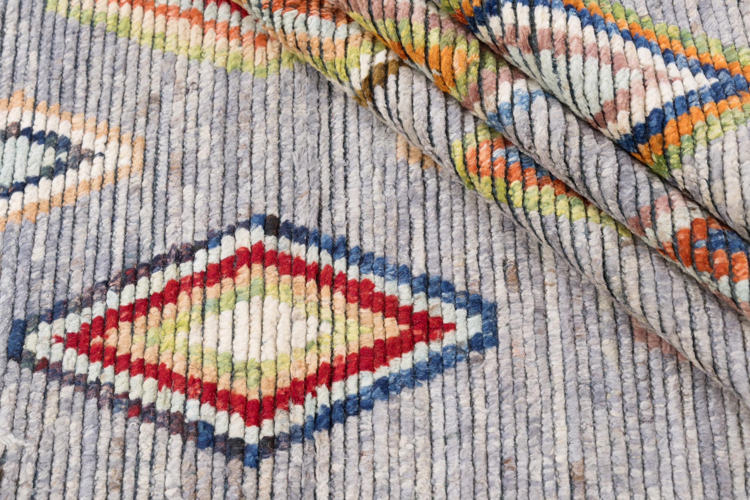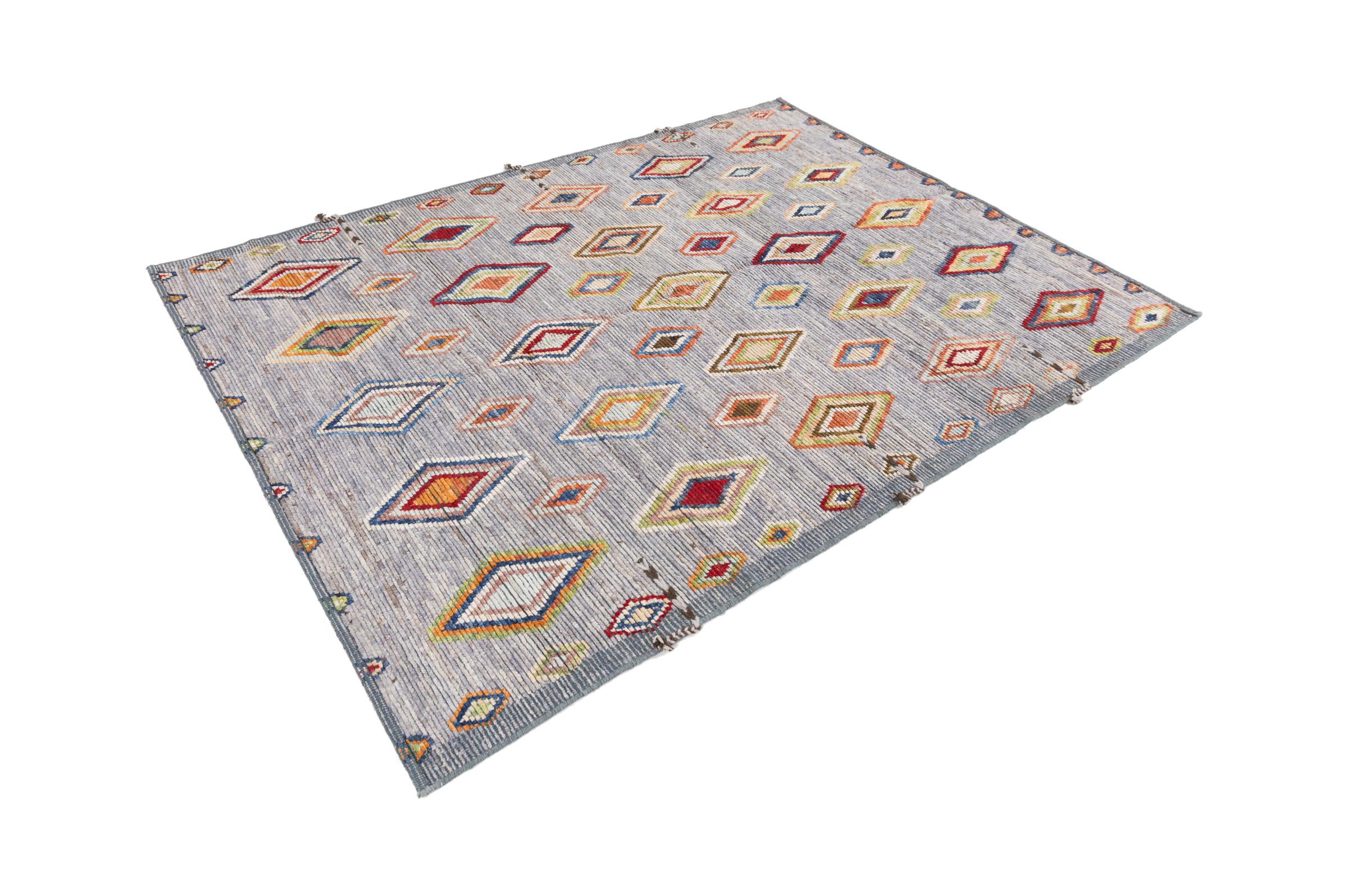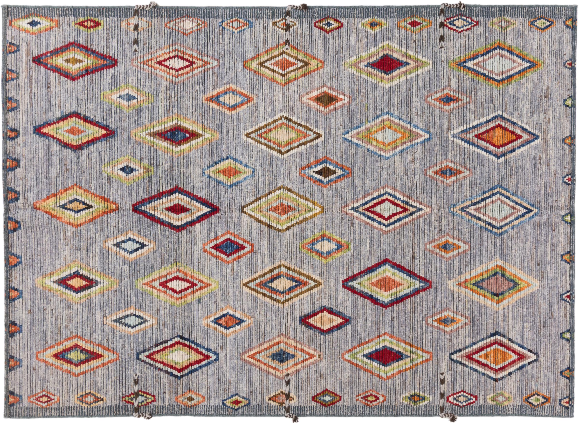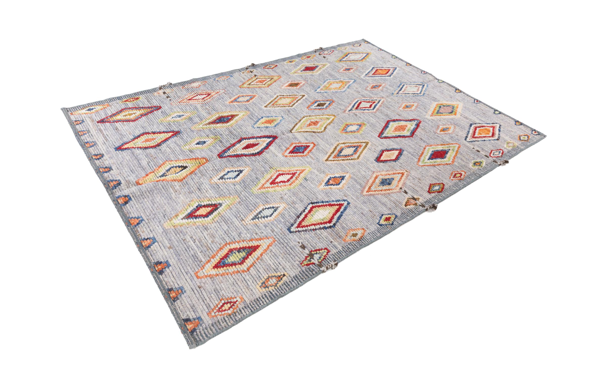 Acest covor berber Ghashghai se caracterizează prin lâna sa de înaltă calitate și o țesătură densă și deosebit de precisă. Prin urmare, este excepțional de durabil și are o grămadă constantă fermă, dar minunat de moale. Designul său inspiră în fiecare zi culori și modele simbolice.