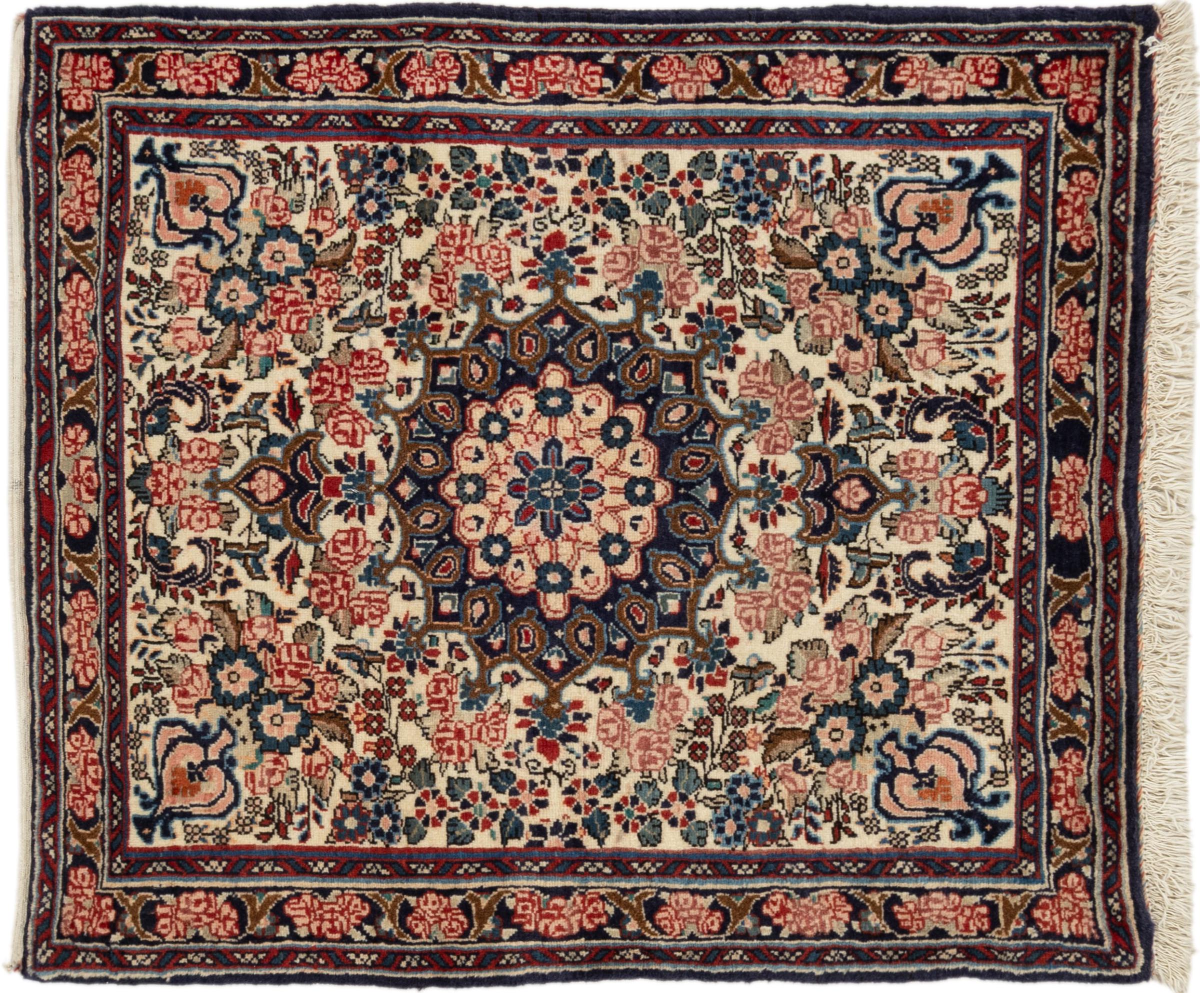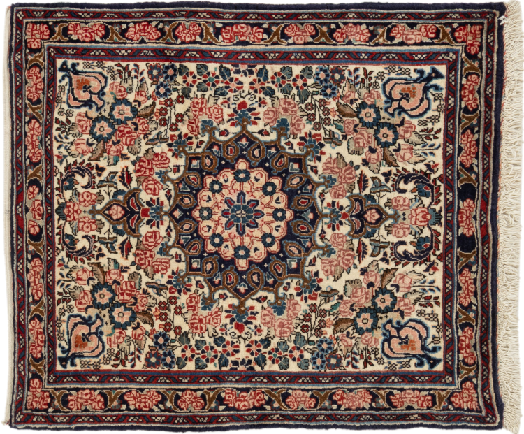 Covor Nr.: 297024007808755 Mărime: 89x79 cm Grosime: cca. 15 mm Noduri: 200 000 - 250 000 / m² Prelucrare: Lucrate de mână Catifeaua: Lână Urzeala: Bumbac Origine: Persien / Iran Vechime: cca. 20-30 de ani (nou) Greutate: cca. 4 kg În stoc: Unic - Doar 1 în stoc