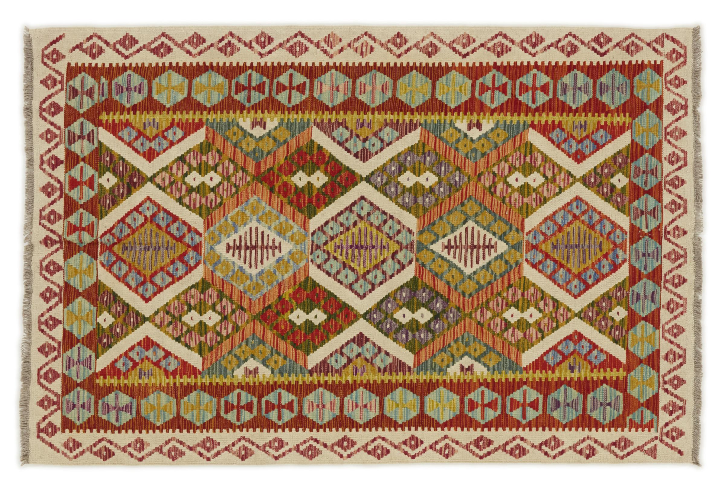 Acest kilim afgan țesut manual este frumos datorită culorilor multiple și modelului tipic. A fost țesut manual în Afganistan din 100% lână de oaie. Este, fără îndoială, mai robust și mai durabil decât covoarele fabricate la mașină. În plus, acest kilim are propriul său caracter. O piesă unică pentru tine și casa ta pe care nu o vei mai găsi niciodată.