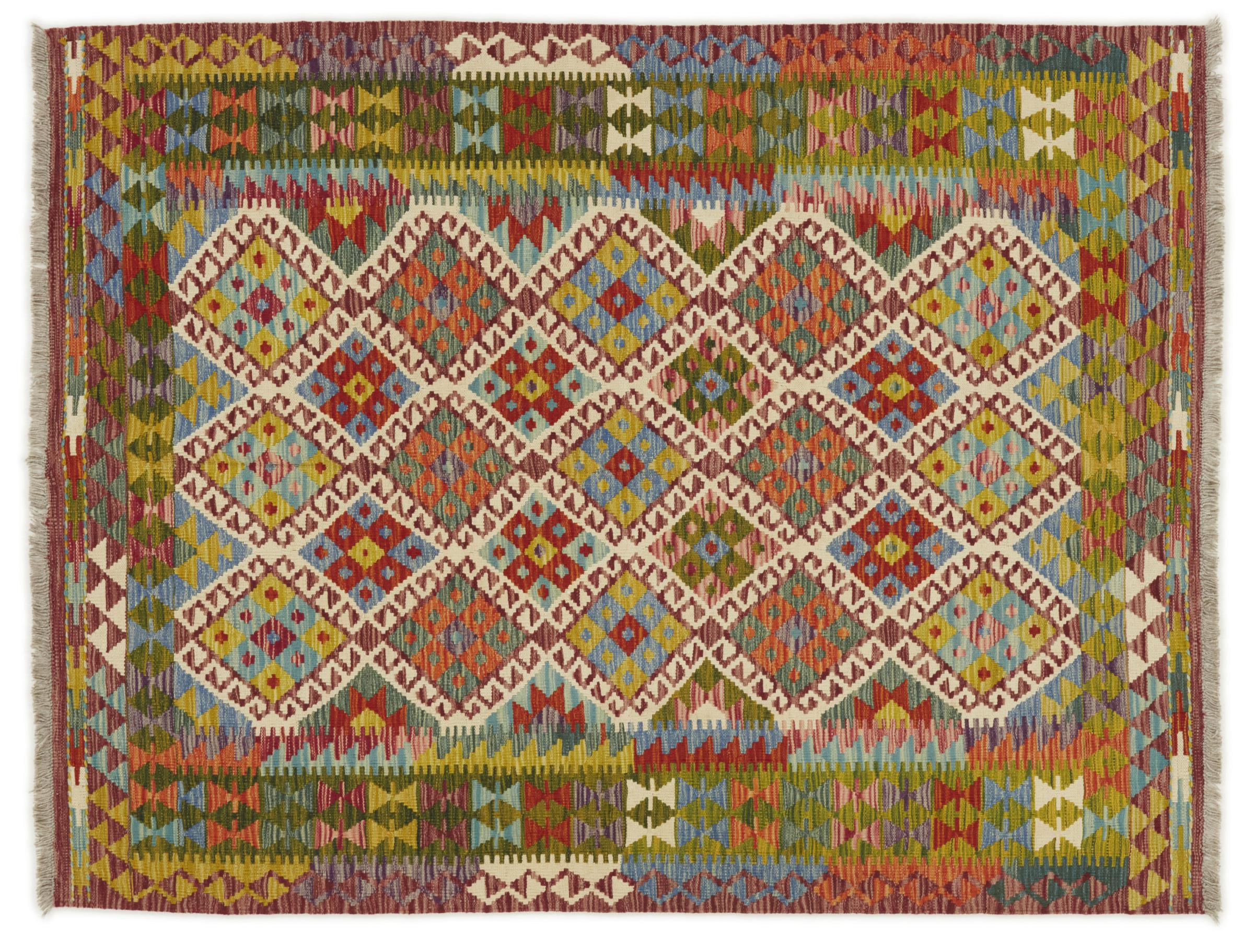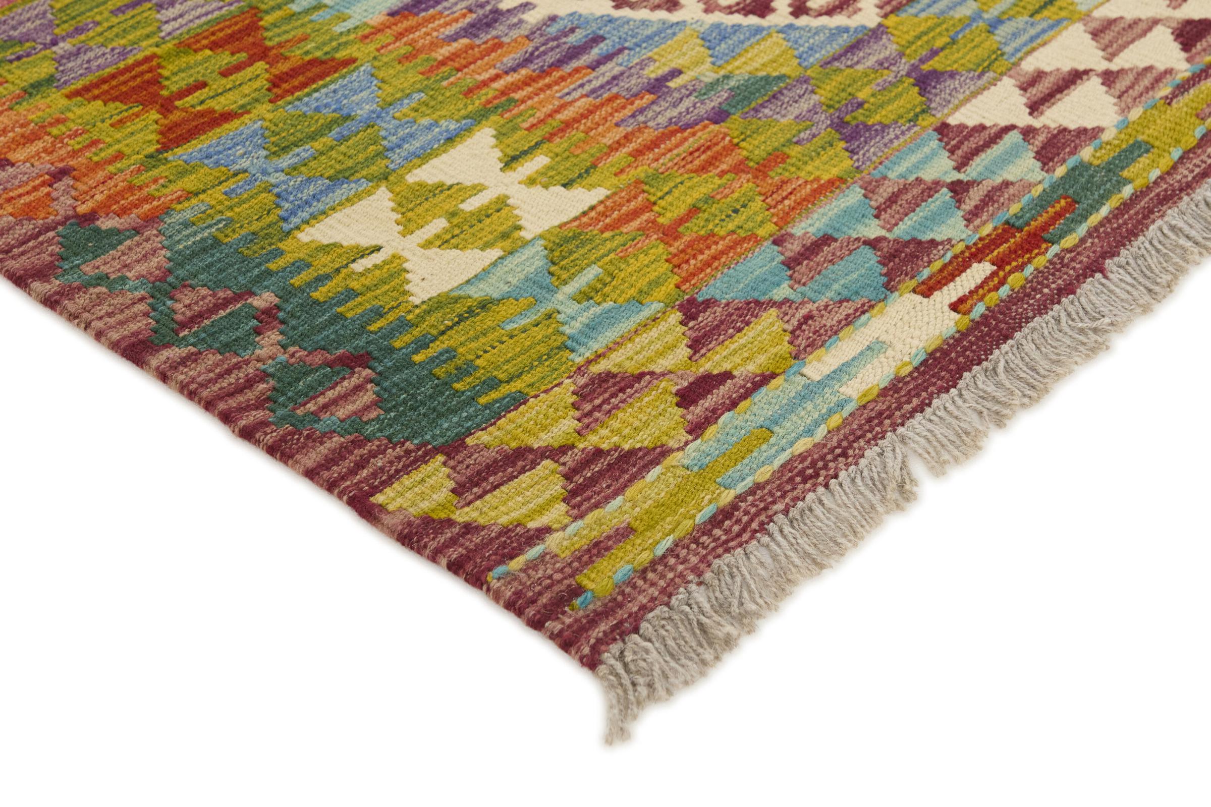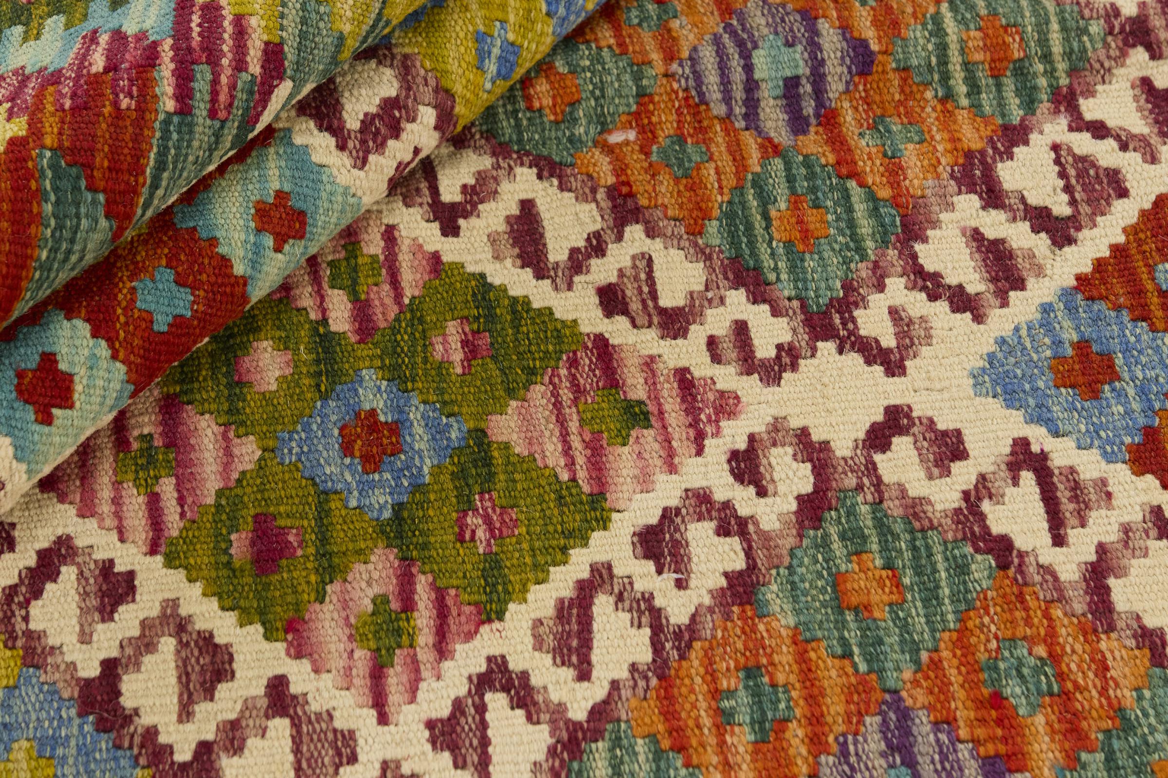 Acest kilim afgan țesut manual este frumos datorită culorilor multiple și modelului tipic. A fost țesut manual în Afganistan din 100% lână de oaie. Este, fără îndoială, mai robust și mai durabil decât covoarele fabricate la mașină. În plus, acest kilim are propriul său caracter. O piesă unică pentru tine și casa ta pe care nu o vei mai găsi niciodată.