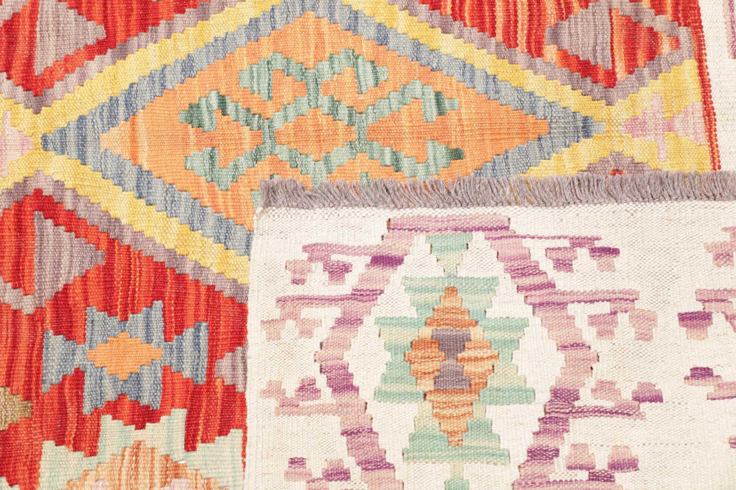 Acest kilim afgan țesut manual este frumos datorită culorilor multiple și modelului tipic. A fost țesut manual în Afganistan din 100% lână de oaie. Este, fără îndoială, mai robust și mai durabil decât covoarele fabricate la mașină. În plus, acest kilim are propriul său caracter. O piesă unică pentru tine și casa ta pe care nu o vei mai găsi niciodată.