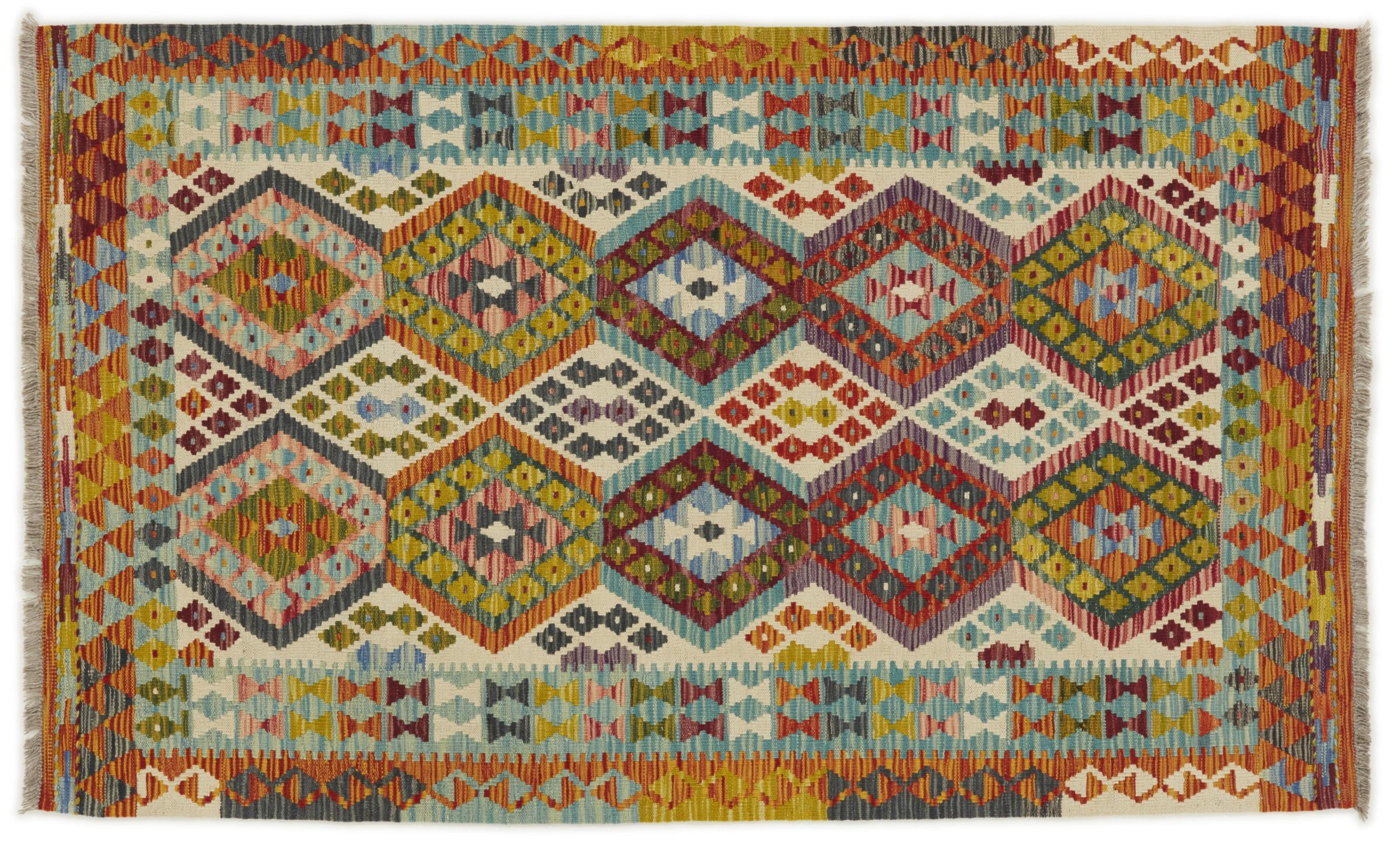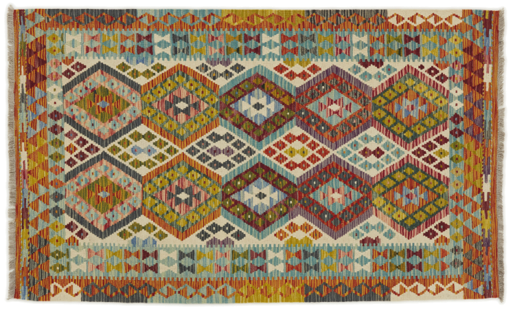 Acest kilim afgan țesut manual este frumos datorită culorilor multiple și modelului tipic. A fost țesut manual în Afganistan din 100% lână de oaie. Este, fără îndoială, mai robust și mai durabil decât covoarele fabricate la mașină. În plus, acest kilim are propriul său caracter. O piesă unică pentru tine și casa ta pe care nu o vei mai găsi niciodată.