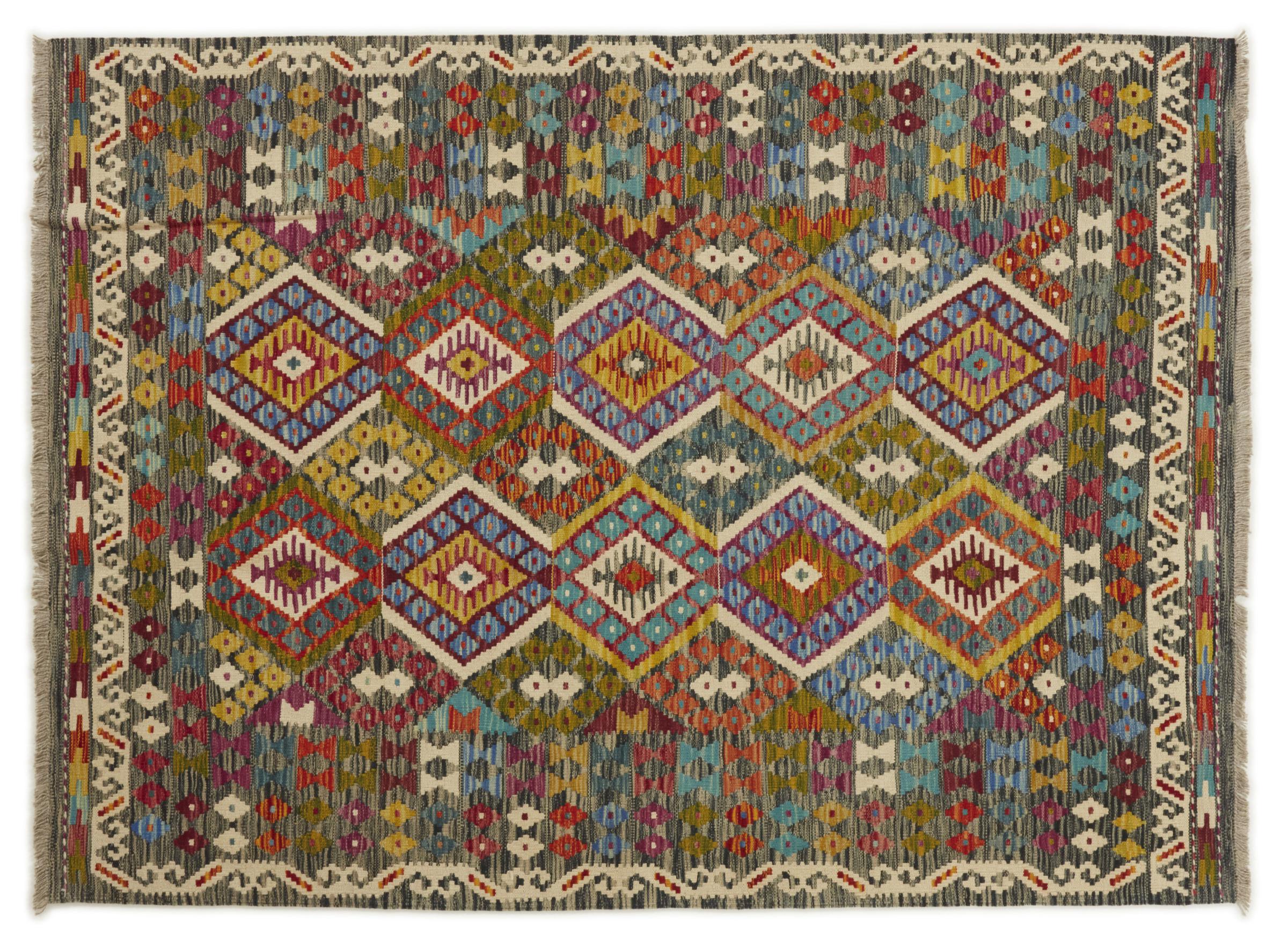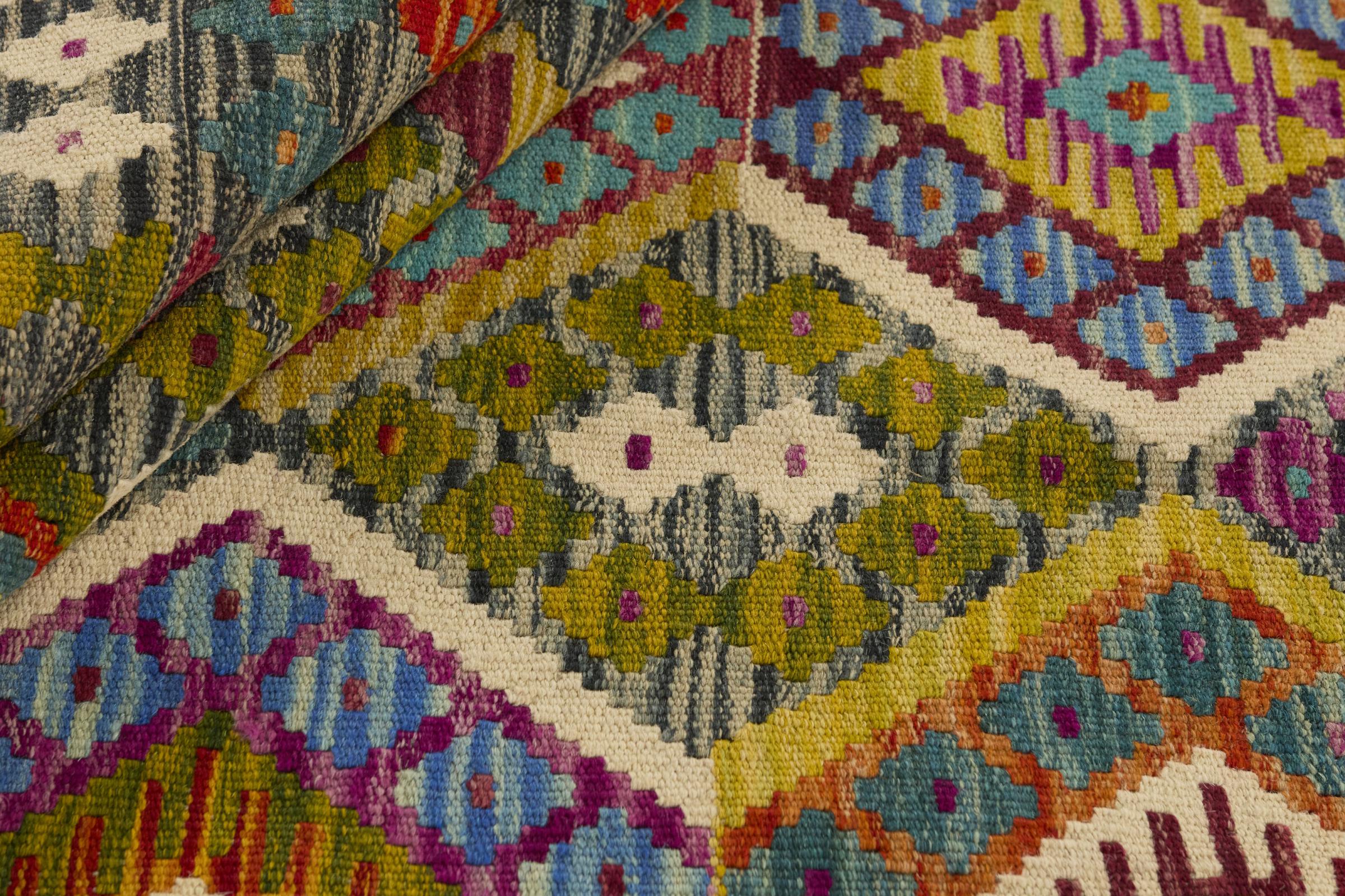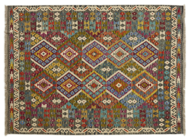 Acest kilim afgan țesut manual este frumos datorită culorilor multiple și modelului tipic. A fost țesut manual în Afganistan din 100% lână de oaie. Este, fără îndoială, mai robust și mai durabil decât covoarele fabricate la mașină. În plus, acest kilim are propriul său caracter. O piesă unică pentru tine și casa ta pe care nu o vei mai găsi niciodată.