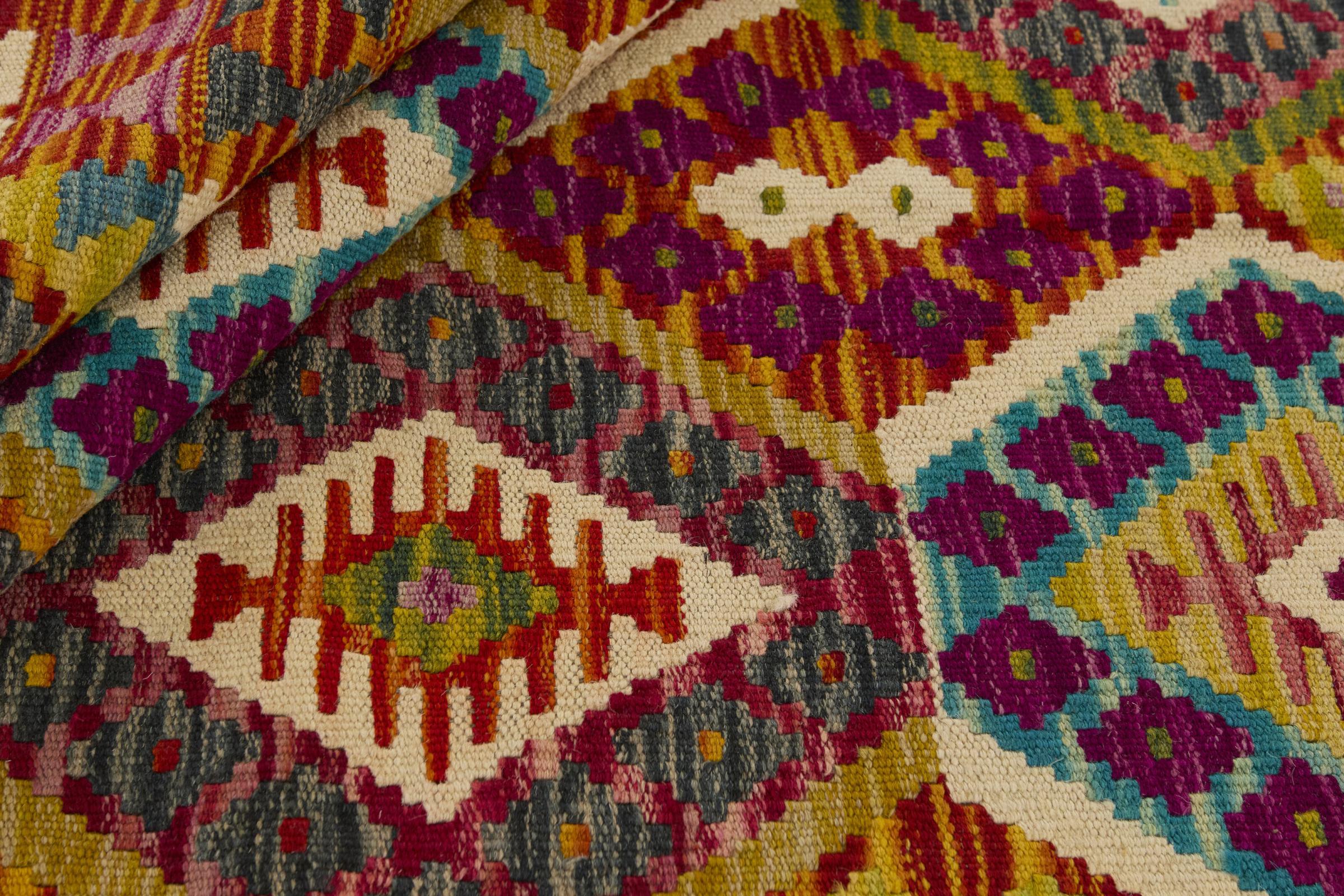Acest kilim afgan țesut manual este frumos datorită culorilor multiple și modelului tipic. A fost țesut manual în Afganistan din 100% lână de oaie. Este, fără îndoială, mai robust și mai durabil decât covoarele fabricate la mașină. În plus, acest kilim are propriul său caracter. O piesă unică pentru tine și casa ta pe care nu o vei mai găsi niciodată.