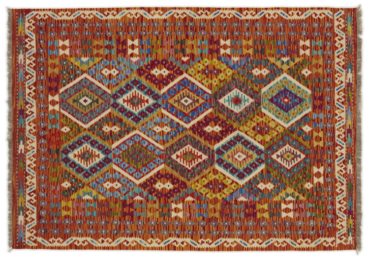 Aceste covoare kilim au o diferență crucială față de covoarele înnodate manual - sunt țesute manual. Nu au o grămadă mare de lână și sunt adesea mai plate și mai aspre decât covoarele din lână înnodate. Designul lor este mai puțin complex și, prin urmare, sunt de obicei semnificativ mai ieftine. Ca avantaj, covoarele kilim sunt, de asemenea, mult mai ușoare și pot fi așezate din față și din spate. Kilimurile țesute manual provin inițial din fosta Persie și acum sunt fabricate și în Afganistan. Au modele destul de simple în linie dreaptă, care se datorează tehnicii lor de țesut.