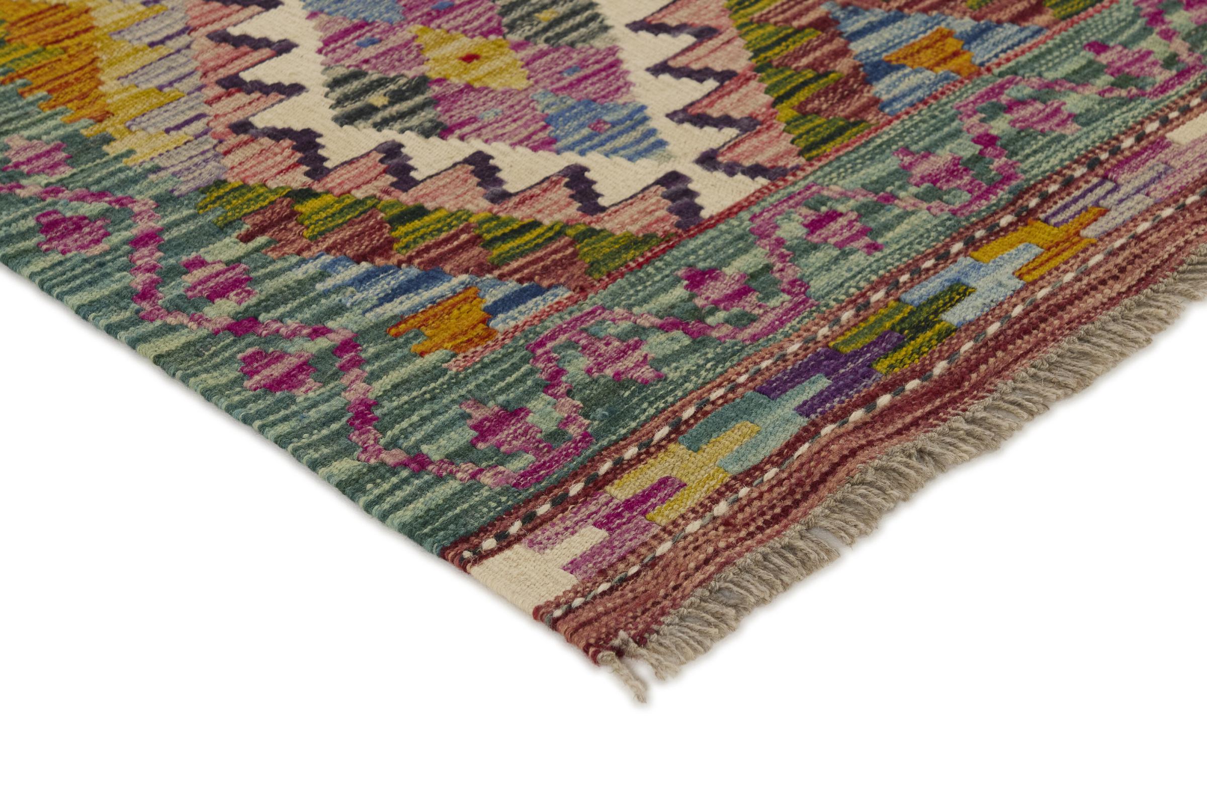 Acest kilim afgan țesut manual este frumos datorită culorilor multiple și modelului tipic. A fost țesut manual în Afganistan din 100% lână de oaie. Este, fără îndoială, mai robust și mai durabil decât covoarele fabricate la mașină. În plus, acest kilim are propriul său caracter. O piesă unică pentru tine și casa ta pe care nu o vei mai găsi niciodată.