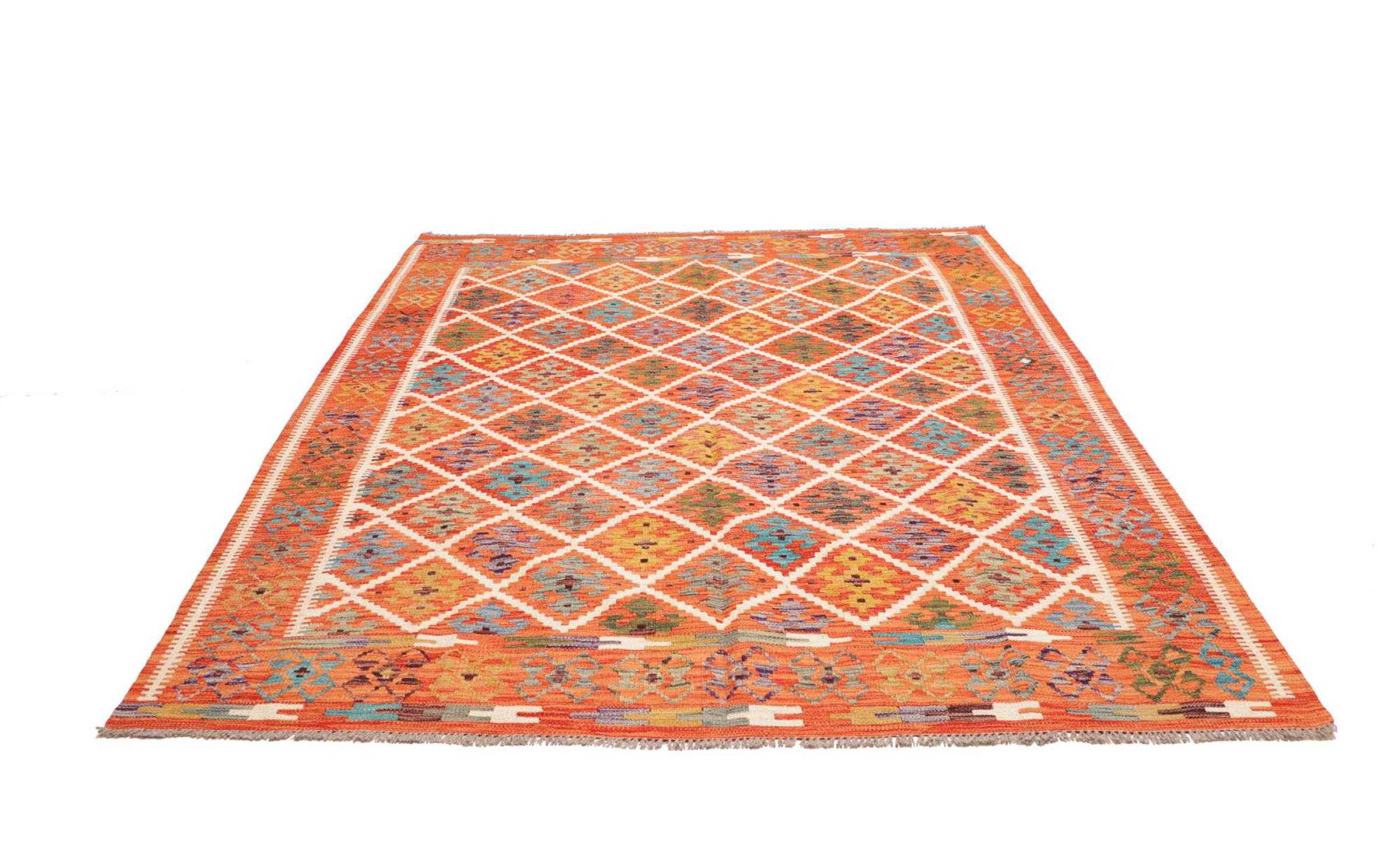 Acest covor este realizat manual ca o țesătură plată pe un războaie de țesut. Țesăturile plate sunt covoare care nu au o grămadă. După cum promite și numele, aceste covoare sunt țesute și nu înnodate. Rezultă un covor plat cu o suprafață texturată. Țesăturile plate nu sunt la fel de moi și de obicei mai subțiri decât covoarele înnodate. În același timp, sunt mult mai puțin complexe de fabricat și pot fi, de obicei, așezate din ambele părți (față și spate). Modelele lor sunt de obicei geometrice, ceea ce se datorează țesăturii.