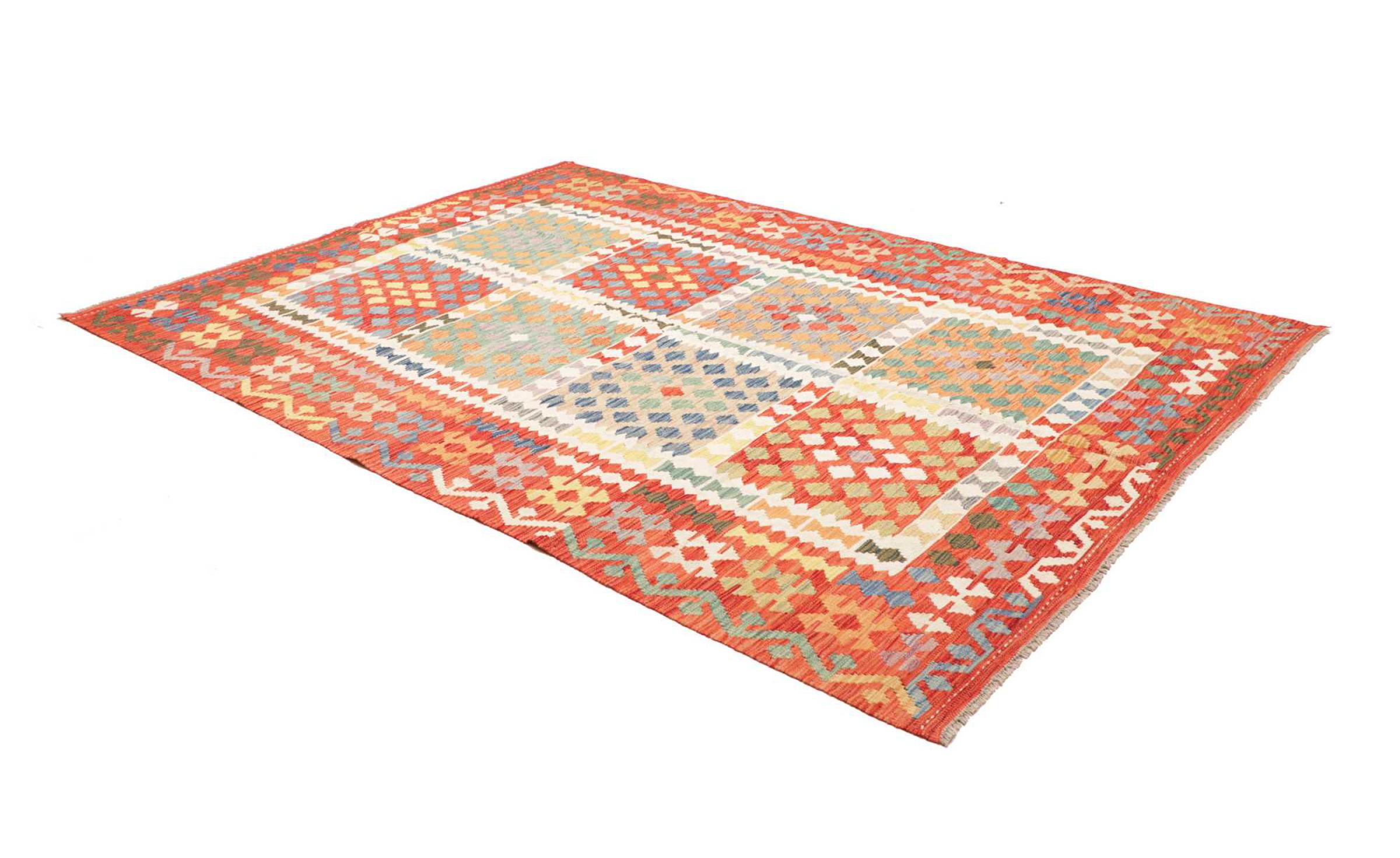 Acest covor este realizat manual ca o țesătură plată pe un războaie de țesut. Țesăturile plate sunt covoare care nu au o grămadă. După cum promite și numele, aceste covoare sunt țesute și nu înnodate. Rezultă un covor plat cu o suprafață texturată. Țesăturile plate nu sunt la fel de moi și de obicei mai subțiri decât covoarele înnodate. În același timp, sunt mult mai puțin complexe de fabricat și pot fi, de obicei, așezate din ambele părți (față și spate). Modelele lor sunt de obicei geometrice, ceea ce se datorează țesăturii.