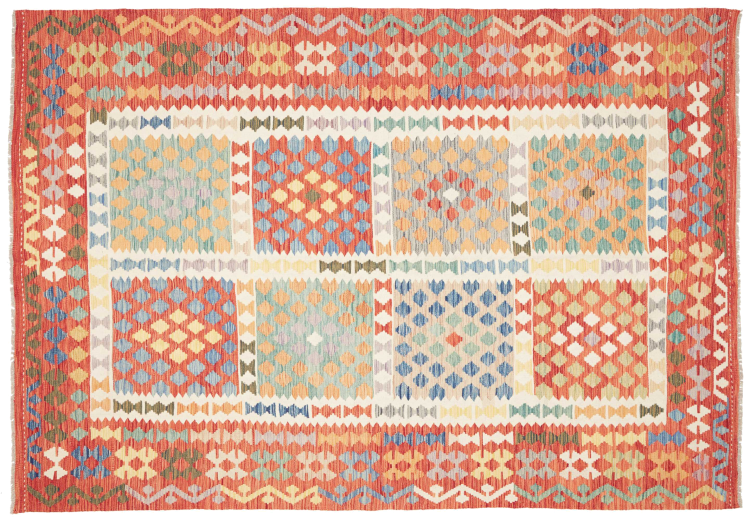 Covor Nr.: 310789001947844 Mărime: 286x201 cm Grosime: cca. 3 mm Prelucrare: Lucrate de mână Catifeaua: Lână toarsă manual Urzeala: Lână Origine: Afganistan Vechime: Nou Greutate: cca. 9 kg În stoc: Unic - Doar 1 în stoc