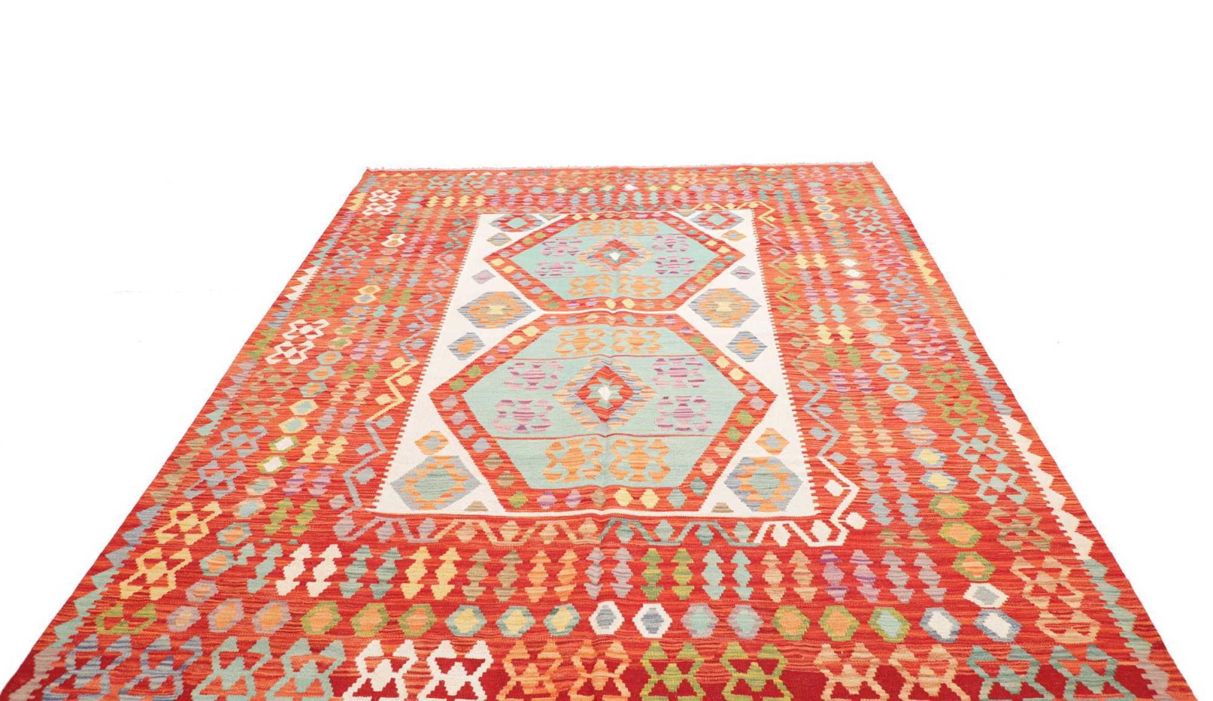 Covor Nr.: 310694009281669 Mărime: 291x212 cm Grosime: cca. 3 mm Prelucrare: Lucrate de mână Catifeaua: Lână toarsă manual Urzeala: Lână Origine: Afganistan Vechime: Nou Greutate: cca. 9 kg În stoc: Unic - Doar 1 în stoc