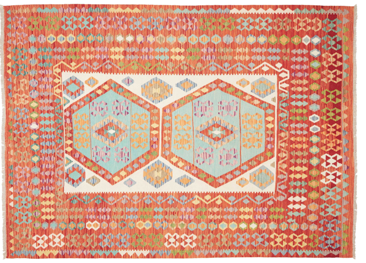 Acest covor este realizat manual ca o țesătură plată pe un războaie de țesut. Țesăturile plate sunt covoare care nu au o grămadă. După cum promite și numele, aceste covoare sunt țesute și nu înnodate. Rezultă un covor plat cu o suprafață texturată. Țesăturile plate nu sunt la fel de moi și de obicei mai subțiri decât covoarele înnodate. În același timp, sunt mult mai puțin complexe de fabricat și pot fi, de obicei, așezate din ambele părți (față și spate). Modelele lor sunt de obicei geometrice, ceea ce se datorează țesăturii.