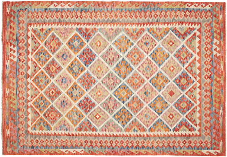 Covor Nr.: 310867003751449 Mărime: 293x206 cm Grosime: cca. 3 mm Prelucrare: Lucrate de mână Catifeaua: Lână toarsă manual Urzeala: Lână Origine: Afganistan Vechime: Nou Greutate: cca. 9 kg În stoc: Unic - Doar 1 în stoc