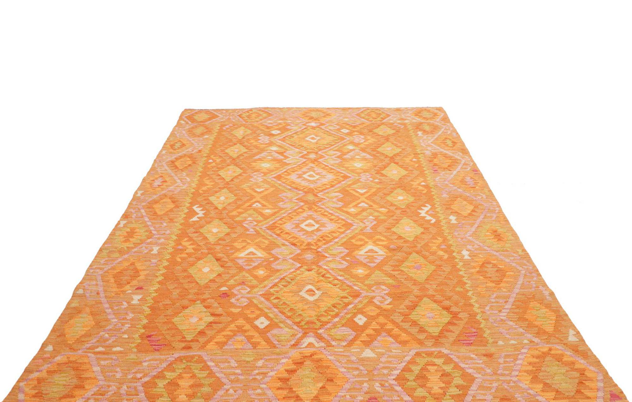 Acest covor este realizat manual ca o țesătură plată pe un războaie de țesut. Țesăturile plate sunt covoare care nu au o grămadă. După cum promite și numele, aceste covoare sunt țesute și nu înnodate. Rezultă un covor plat cu o suprafață texturată. Țesăturile plate nu sunt la fel de moi și de obicei mai subțiri decât covoarele înnodate. În același timp, sunt mult mai puțin complexe de fabricat și pot fi, de obicei, așezate din ambele părți (față și spate). Modelele lor sunt de obicei geometrice, ceea ce se datorează țesăturii.