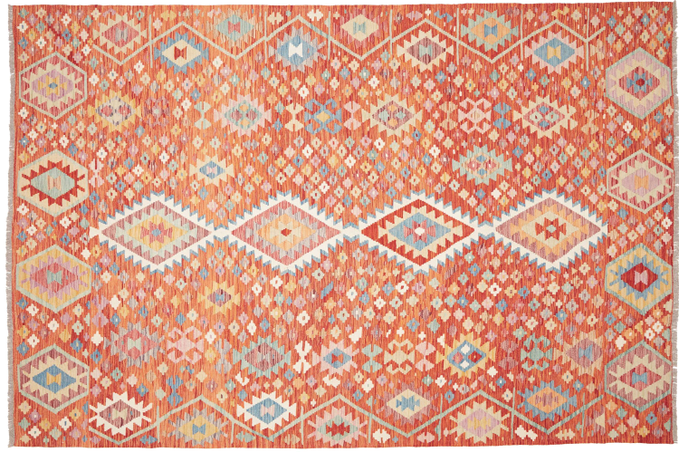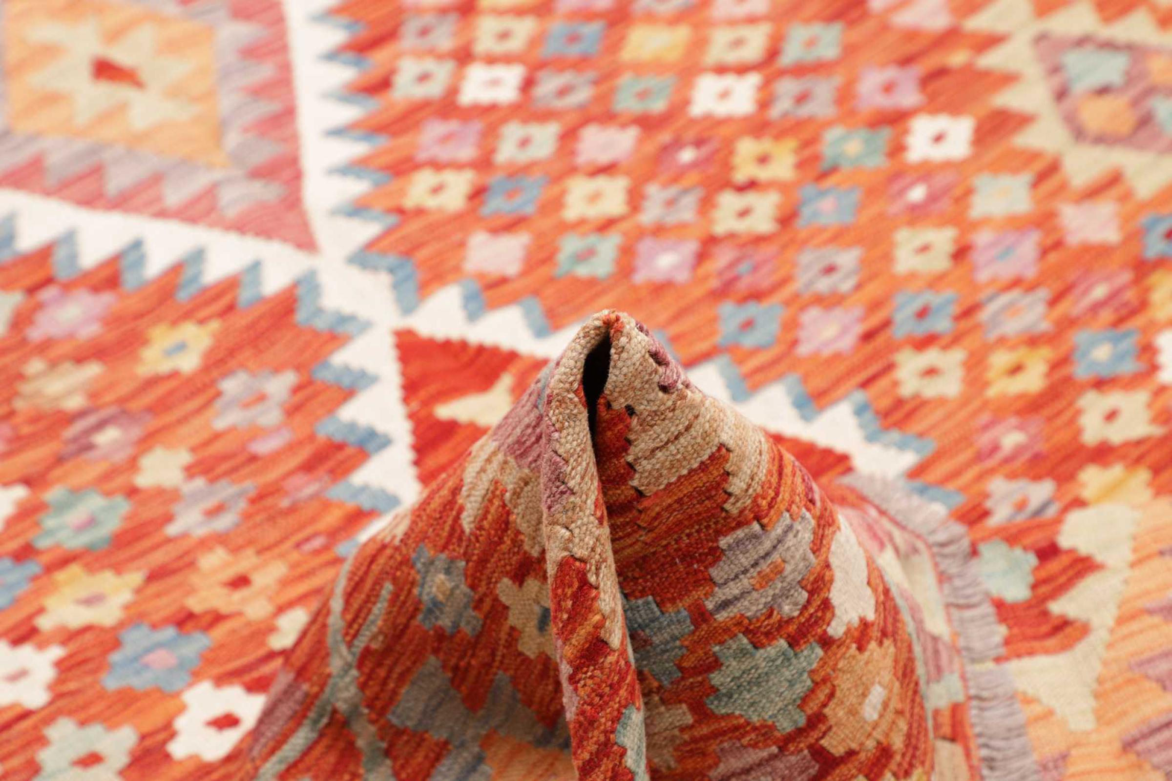 Acest covor este realizat manual ca o țesătură plată pe un războaie de țesut. Țesăturile plate sunt covoare care nu au o grămadă. După cum promite și numele, aceste covoare sunt țesute și nu înnodate. Rezultă un covor plat cu o suprafață texturată. Țesăturile plate nu sunt la fel de moi și de obicei mai subțiri decât covoarele înnodate. În același timp, sunt mult mai puțin complexe de fabricat și pot fi, de obicei, așezate din ambele părți (față și spate). Modelele lor sunt de obicei geometrice, ceea ce se datorează țesăturii.