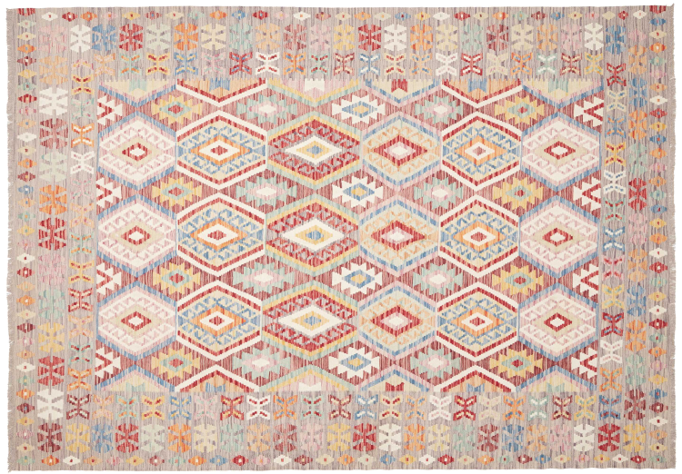 Acest covor este realizat manual ca o țesătură plată pe un războaie de țesut. Țesăturile plate sunt covoare care nu au o grămadă. După cum promite și numele, aceste covoare sunt țesute și nu înnodate. Rezultă un covor plat cu o suprafață texturată. Țesăturile plate nu sunt la fel de moi și de obicei mai subțiri decât covoarele înnodate. În același timp, sunt mult mai puțin complexe de fabricat și pot fi, de obicei, așezate din ambele părți (față și spate). Modelele lor sunt de obicei geometrice, ceea ce se datorează țesăturii.