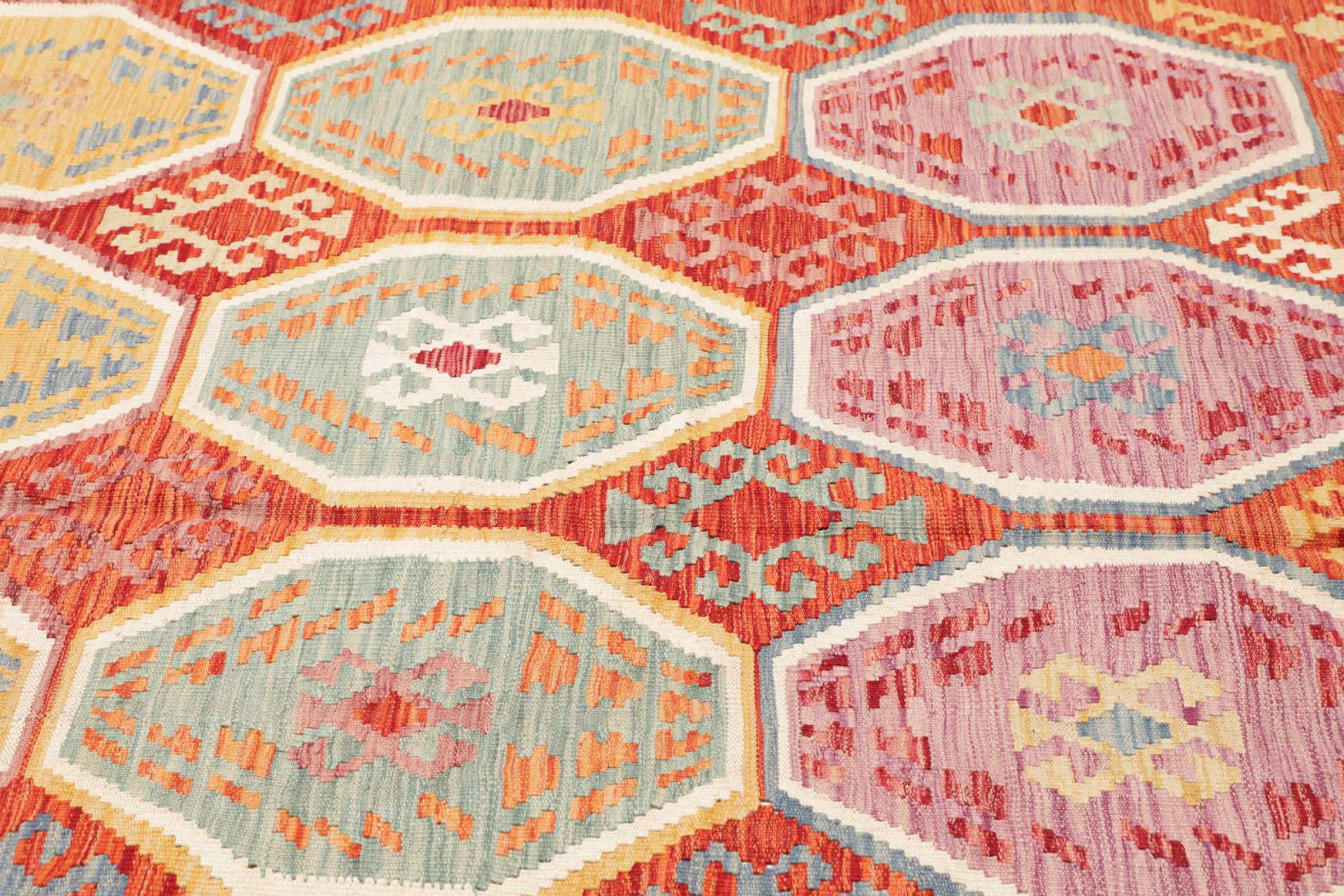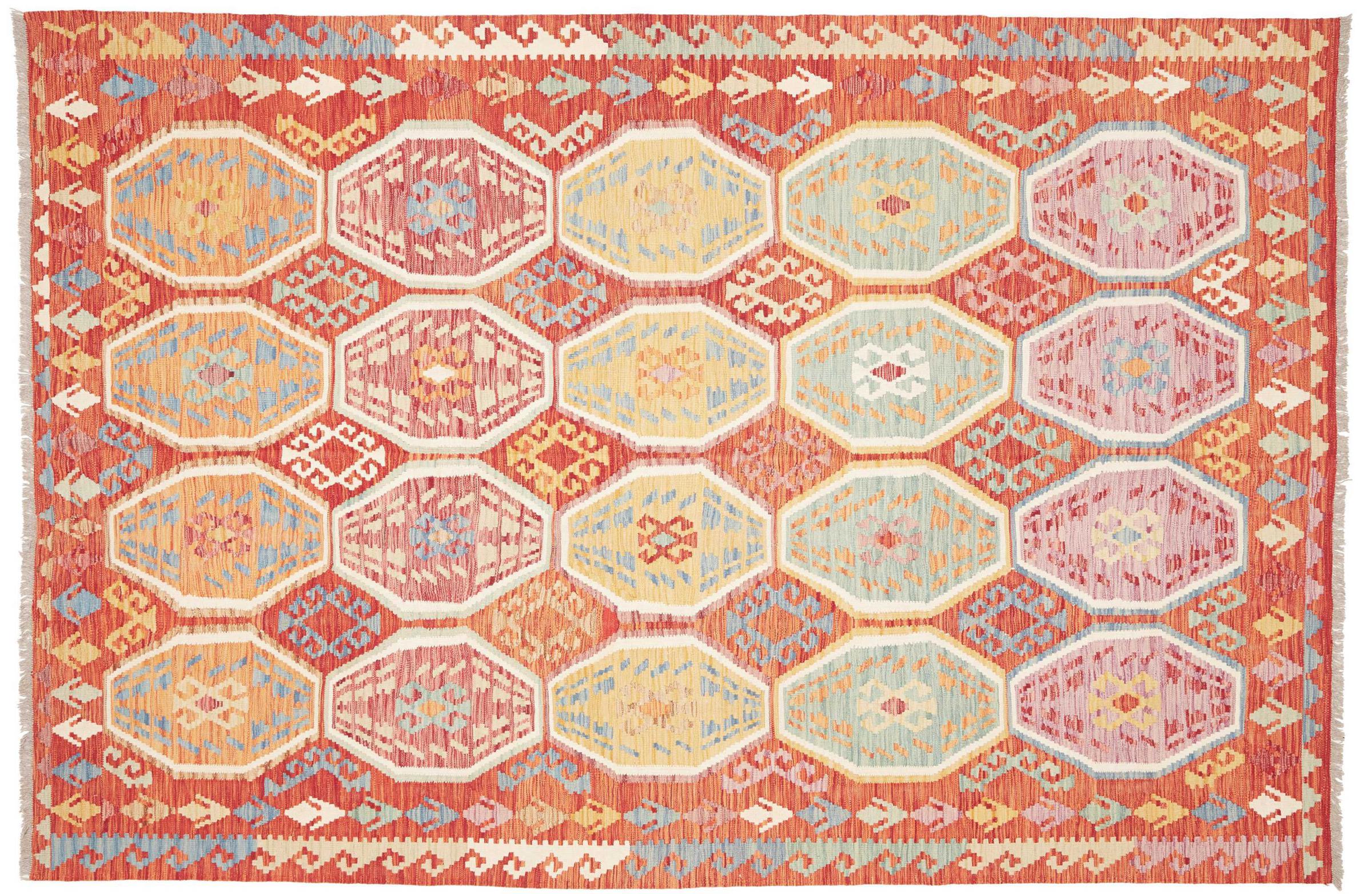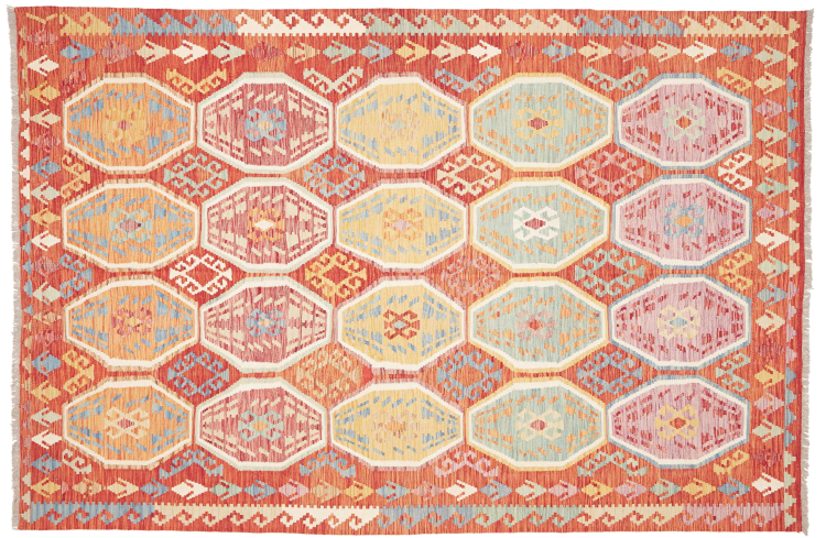 Acest covor este realizat manual ca o țesătură plată pe un războaie de țesut. Țesăturile plate sunt covoare care nu au o grămadă. După cum promite și numele, aceste covoare sunt țesute și nu înnodate. Rezultă un covor plat cu o suprafață texturată. Țesăturile plate nu sunt la fel de moi și de obicei mai subțiri decât covoarele înnodate. În același timp, sunt mult mai puțin complexe de fabricat și pot fi, de obicei, așezate din ambele părți (față și spate). Modelele lor sunt de obicei geometrice, ceea ce se datorează țesăturii.
