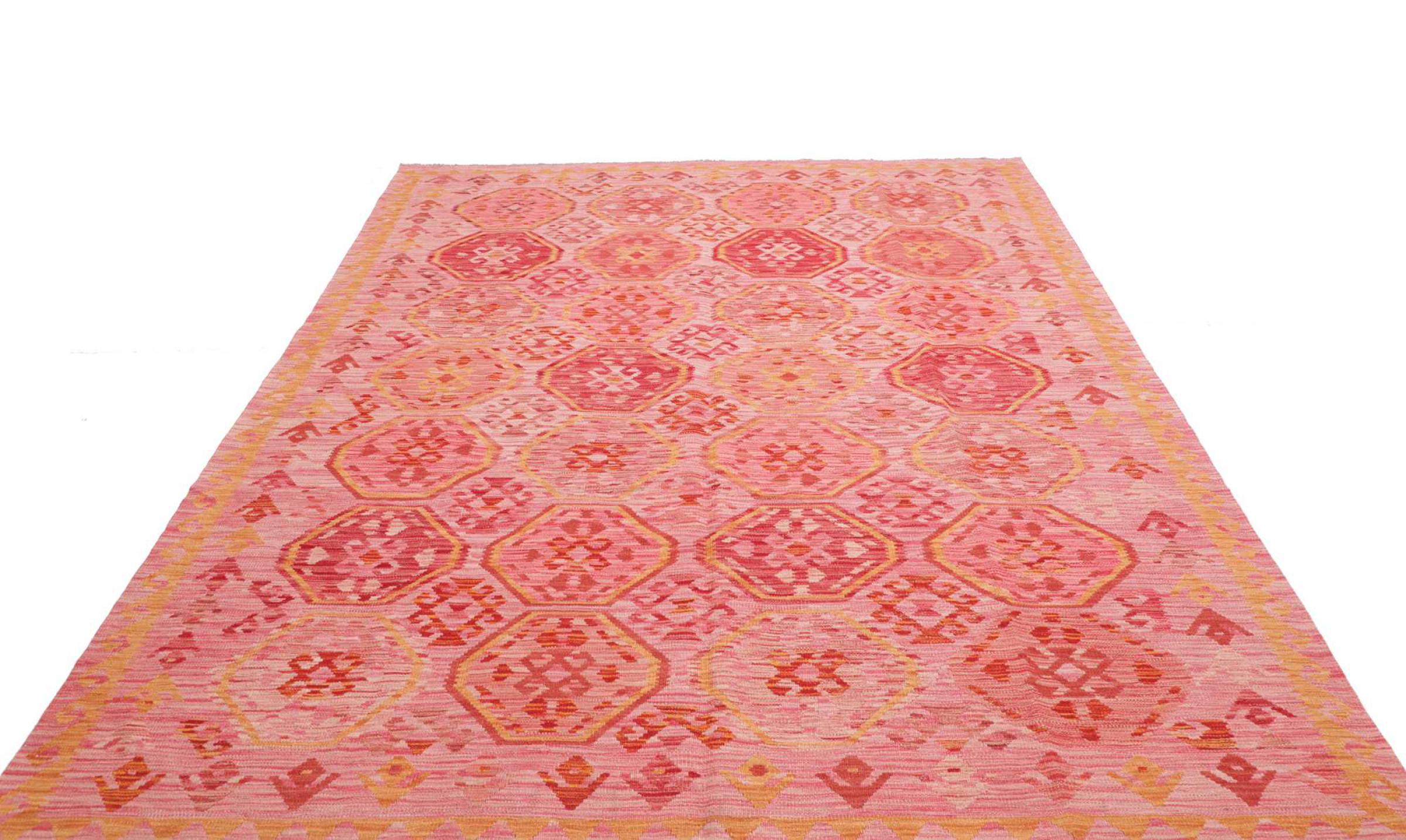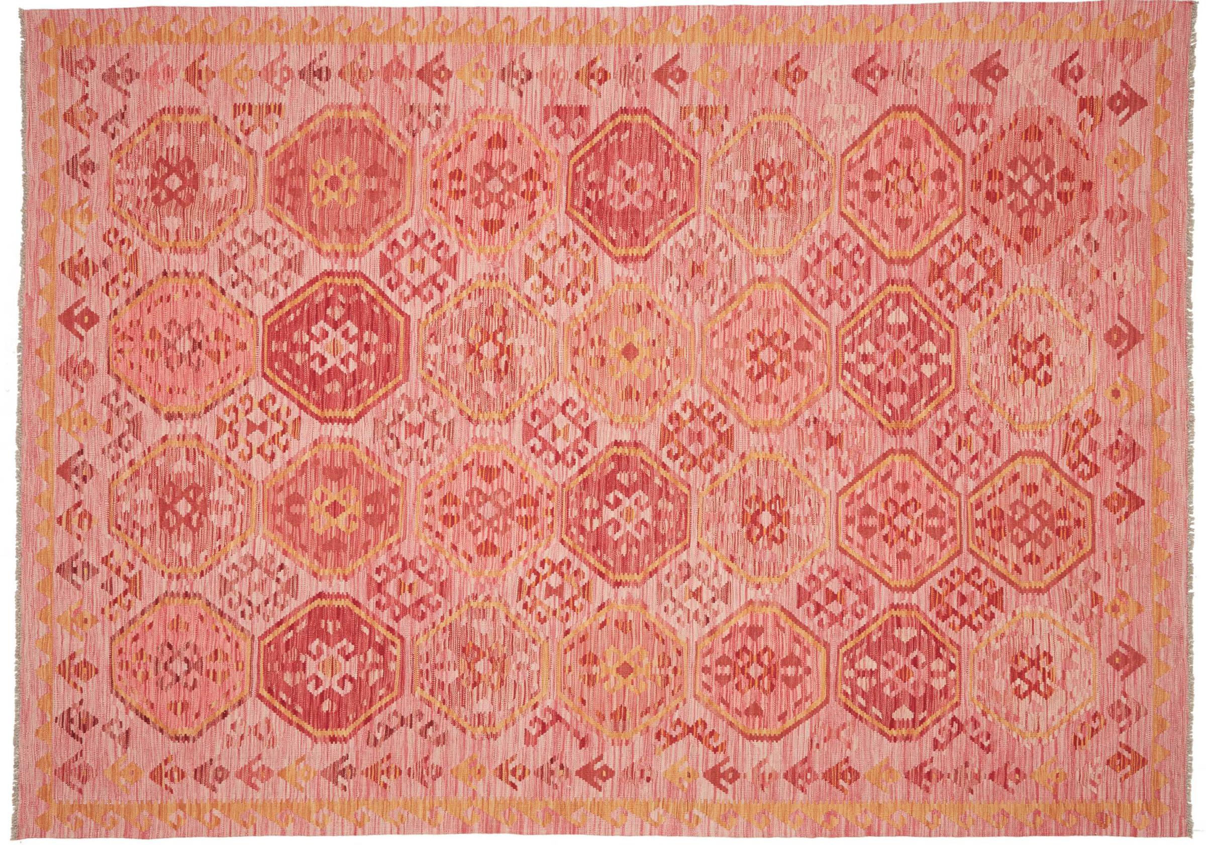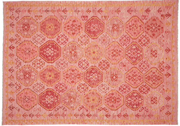 Acest covor este realizat manual ca o țesătură plată pe un războaie de țesut. Țesăturile plate sunt covoare care nu au o grămadă. După cum promite și numele, aceste covoare sunt țesute și nu înnodate. Rezultă un covor plat cu o suprafață texturată. Țesăturile plate nu sunt la fel de moi și de obicei mai subțiri decât covoarele înnodate. În același timp, sunt mult mai puțin complexe de fabricat și pot fi, de obicei, așezate din ambele părți (față și spate). Modelele lor sunt de obicei geometrice, ceea ce se datorează țesăturii.
