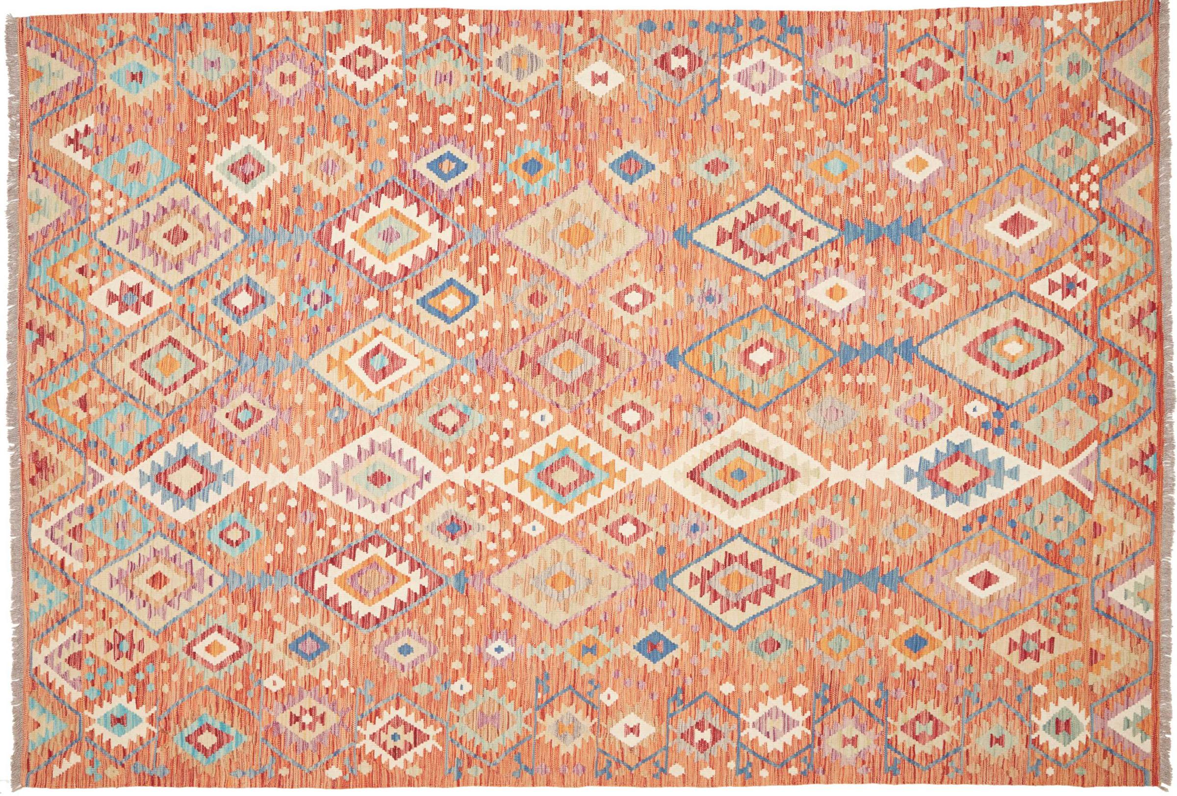 Acest covor este realizat manual ca o țesătură plată pe un războaie de țesut. Țesăturile plate sunt covoare care nu au o grămadă. După cum promite și numele, aceste covoare sunt țesute și nu înnodate. Rezultă un covor plat cu o suprafață texturată. Țesăturile plate nu sunt la fel de moi și de obicei mai subțiri decât covoarele înnodate. În același timp, sunt mult mai puțin complexe de fabricat și pot fi, de obicei, așezate din ambele părți (față și spate). Modelele lor sunt de obicei geometrice, ceea ce se datorează țesăturii.