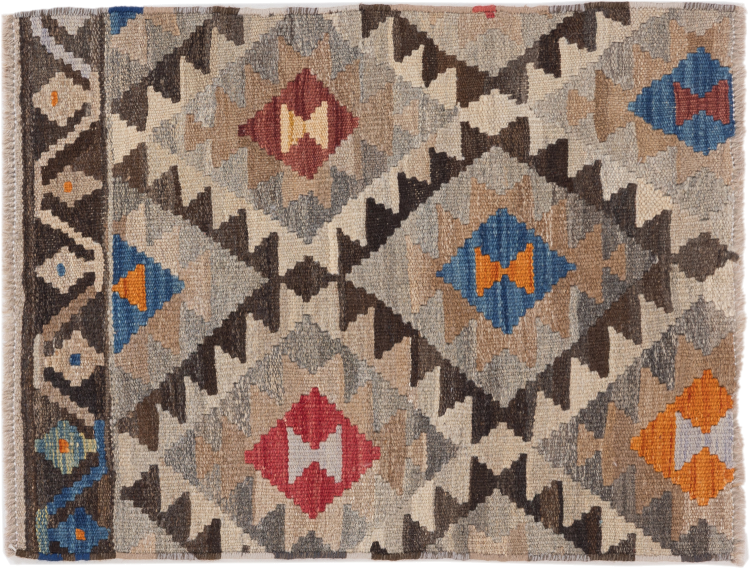 Covor Nr.: 2950110042023 Mărime: 79x62 cm Grosime: cca. 3 mm Prelucrare: Lucrate de mână Catifeaua: Lână toarsă manual Urzeala: Lână Origine: Afganistan Vechime: Nou Greutate: cca. 1 kg De asemenea cunoscut ca si Kilim, Qilim, Chilim, Afgan, Afghán În stoc: Unic