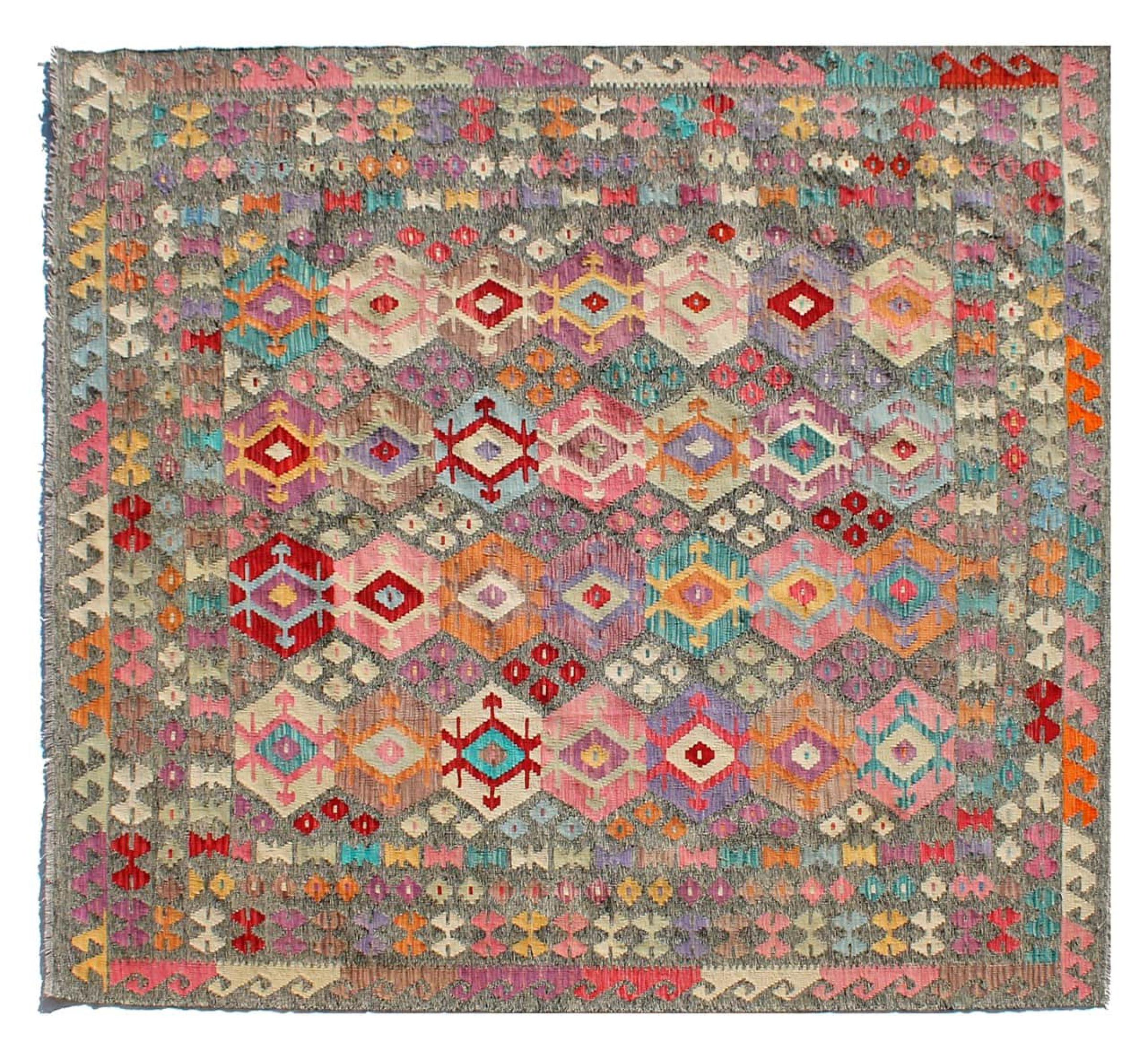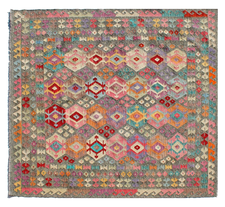 Acest kilim afgan țesut manual este frumos datorită culorilor multiple și modelului tipic. A fost țesut manual în Afganistan din 100% lână de oaie. Este, fără îndoială, mai robust și mai durabil decât covoarele fabricate la mașină. În plus, acest kilim are propriul său caracter. O piesă unică pentru tine și casa ta pe care nu o vei mai găsi niciodată.