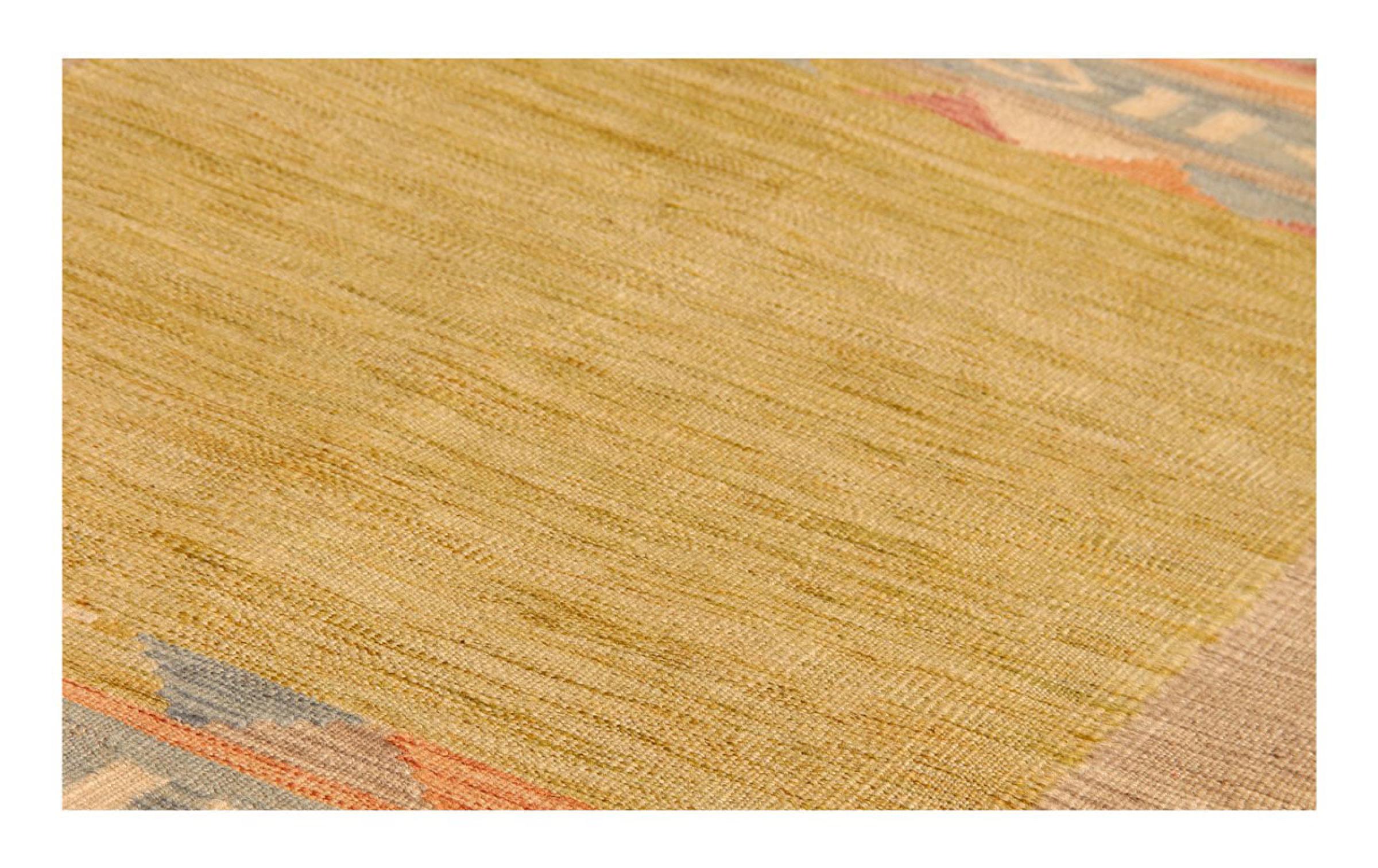 Acest covor este realizat manual ca o țesătură plată pe un războaie de țesut. Țesăturile plate sunt covoare care nu au o grămadă. După cum promite și numele, aceste covoare sunt țesute și nu înnodate. Rezultă un covor plat cu o suprafață texturată. Țesăturile plate nu sunt la fel de moi și de obicei mai subțiri decât covoarele înnodate. În același timp, sunt mult mai puțin complexe de fabricat și pot fi, de obicei, așezate din ambele părți (față și spate). Modelele lor sunt de obicei geometrice, ceea ce se datorează țesăturii.