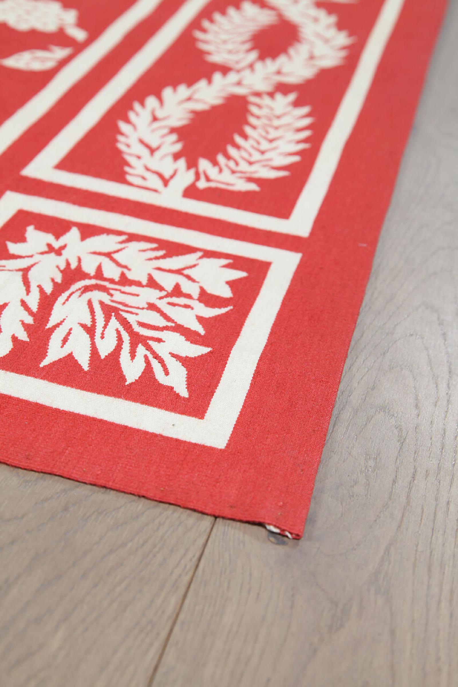 Acest covor este realizat manual ca o țesătură plată pe un războaie de țesut. Țesăturile plate sunt covoare care nu au o grămadă. După cum promite și numele, aceste covoare sunt țesute și nu înnodate. Rezultă un covor plat cu o suprafață texturată. Țesăturile plate nu sunt la fel de moi și de obicei mai subțiri decât covoarele înnodate. În același timp, sunt mult mai puțin complexe de fabricat și pot fi, de obicei, așezate din ambele părți (față și spate). Modelele lor sunt de obicei geometrice, ceea ce se datorează țesăturii.