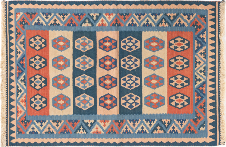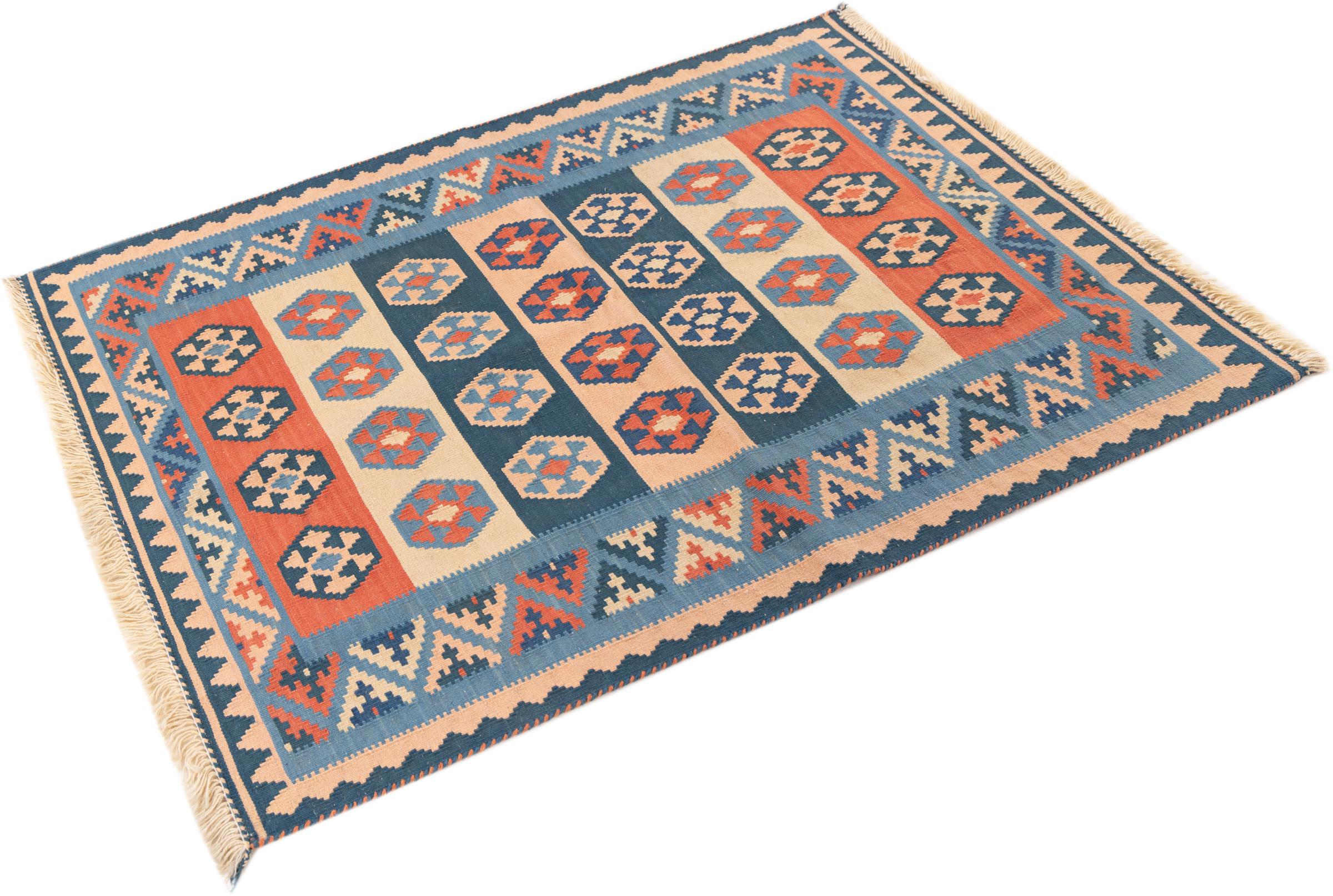 Acest Chilim fars țesut manual combină modelele și ornamentele persane cu tradiția țesăturilor plate. O combinație grozavă și modernă a celor mai populare concepte ale Orientului. Acest lucru creează un covor cu o gamă largă de utilizări. Fie ca o cuvertura de pat, fie ca un covor in fata canapelei – un kilim Fars face posibil acest lucru si poate fi gasit acum in cele mai cunoscute reviste de design interior. Covoarele Kilim Fars sunt țesute manual în Iran și, prin urmare, se numără printre kilimurile de cea mai înaltă calitate.