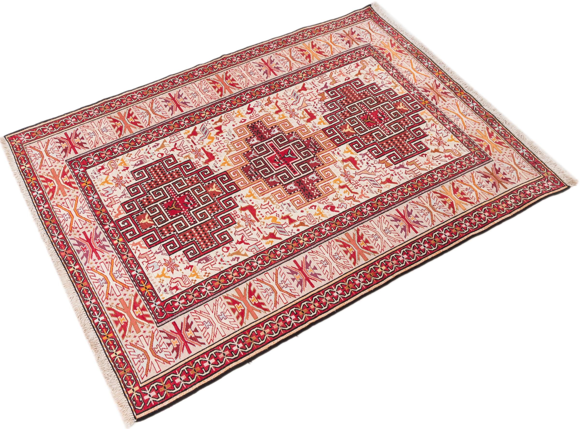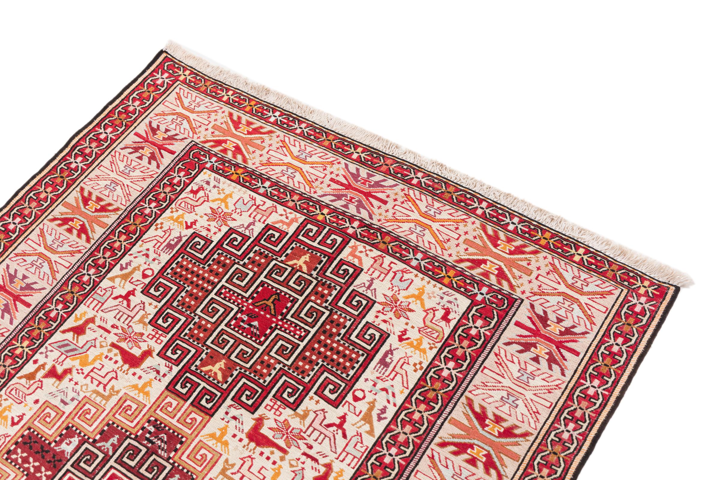 Acest covor este realizat manual ca o țesătură plată pe un războaie de țesut. Țesăturile plate sunt covoare care nu au o grămadă. După cum promite și numele, aceste covoare sunt țesute și nu înnodate. Rezultă un covor plat cu o suprafață texturată. Țesăturile plate nu sunt la fel de moi și de obicei mai subțiri decât covoarele înnodate. În același timp, sunt mult mai puțin complexe de fabricat și pot fi, de obicei, așezate din ambele părți (față și spate). Modelele lor sunt de obicei geometrice, ceea ce se datorează țesăturii.