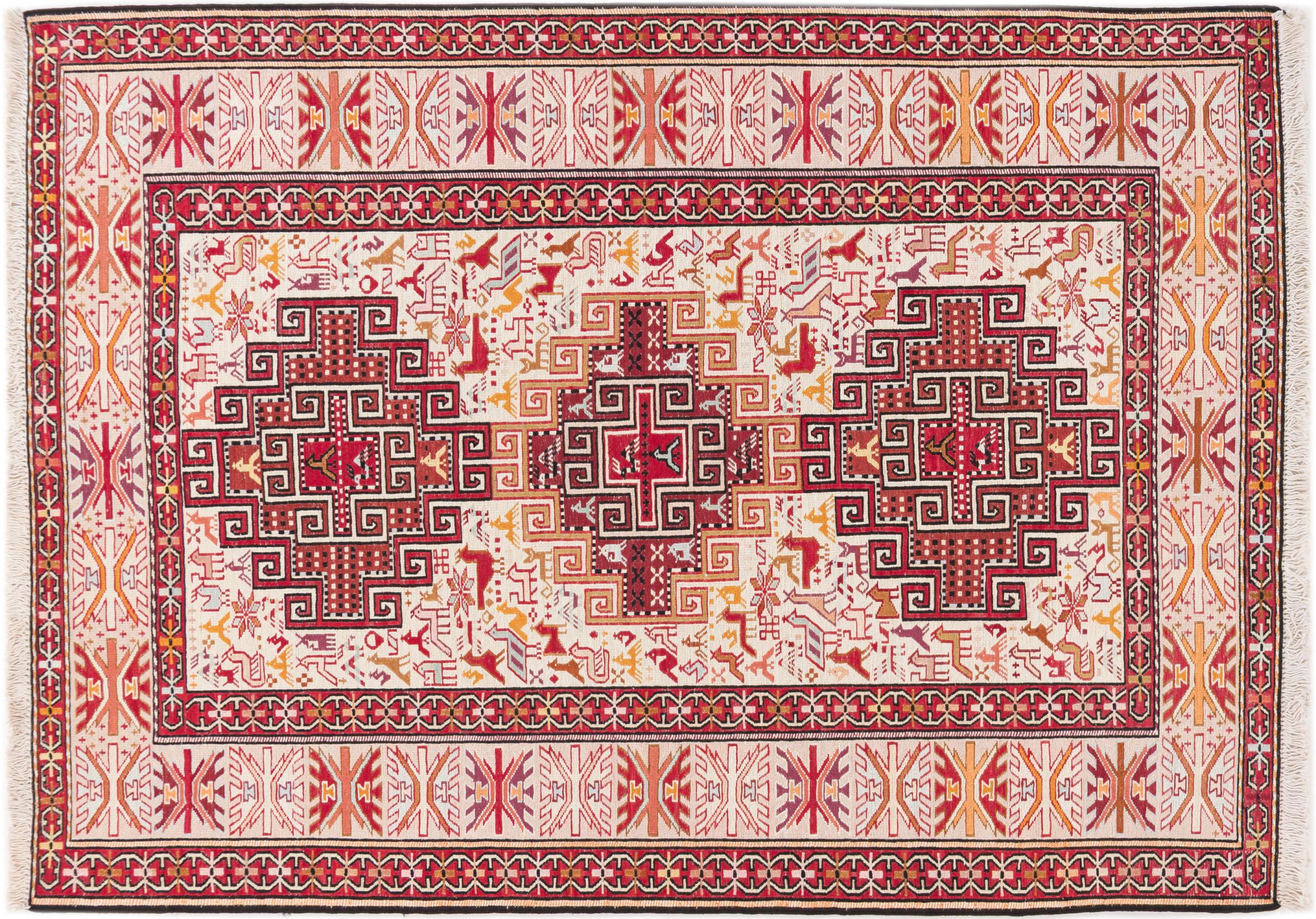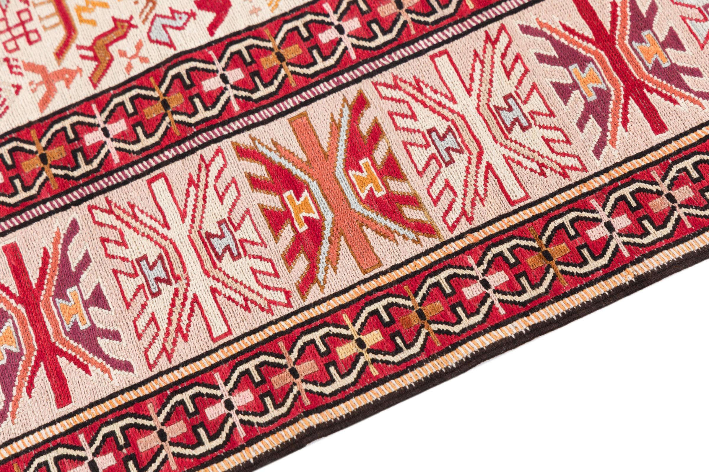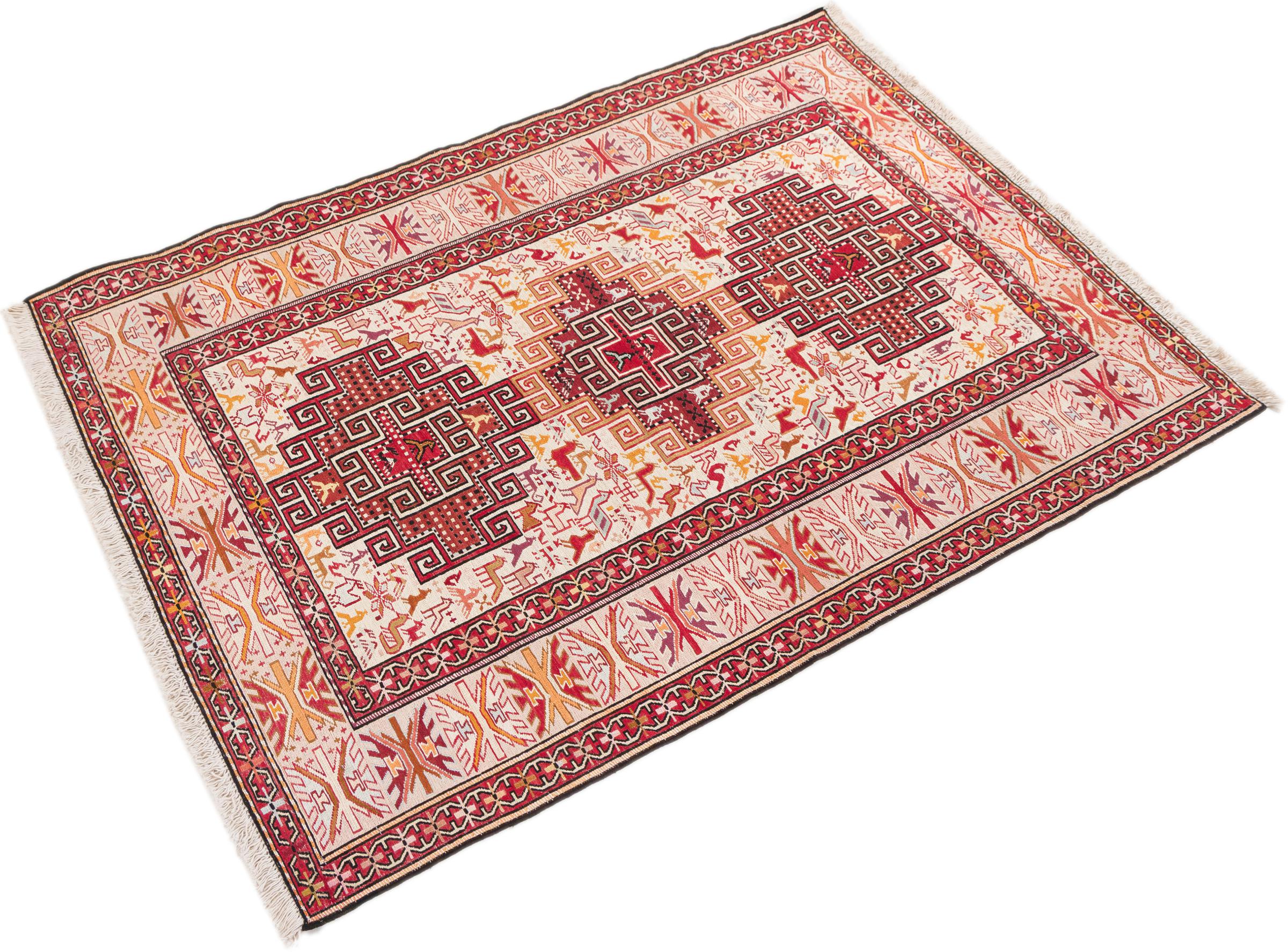 Acest Chilim fars țesut manual combină modelele și ornamentele persane cu tradiția țesăturilor plate. O combinație grozavă și modernă a celor mai populare concepte ale Orientului. Acest lucru creează un covor cu o gamă largă de utilizări. Fie ca o cuvertura de pat, fie ca un covor in fata canapelei – un kilim Fars face posibil acest lucru si poate fi gasit acum in cele mai cunoscute reviste de design interior. Covoarele Kilim Fars sunt țesute manual în Iran și, prin urmare, se numără printre kilimurile de cea mai înaltă calitate.