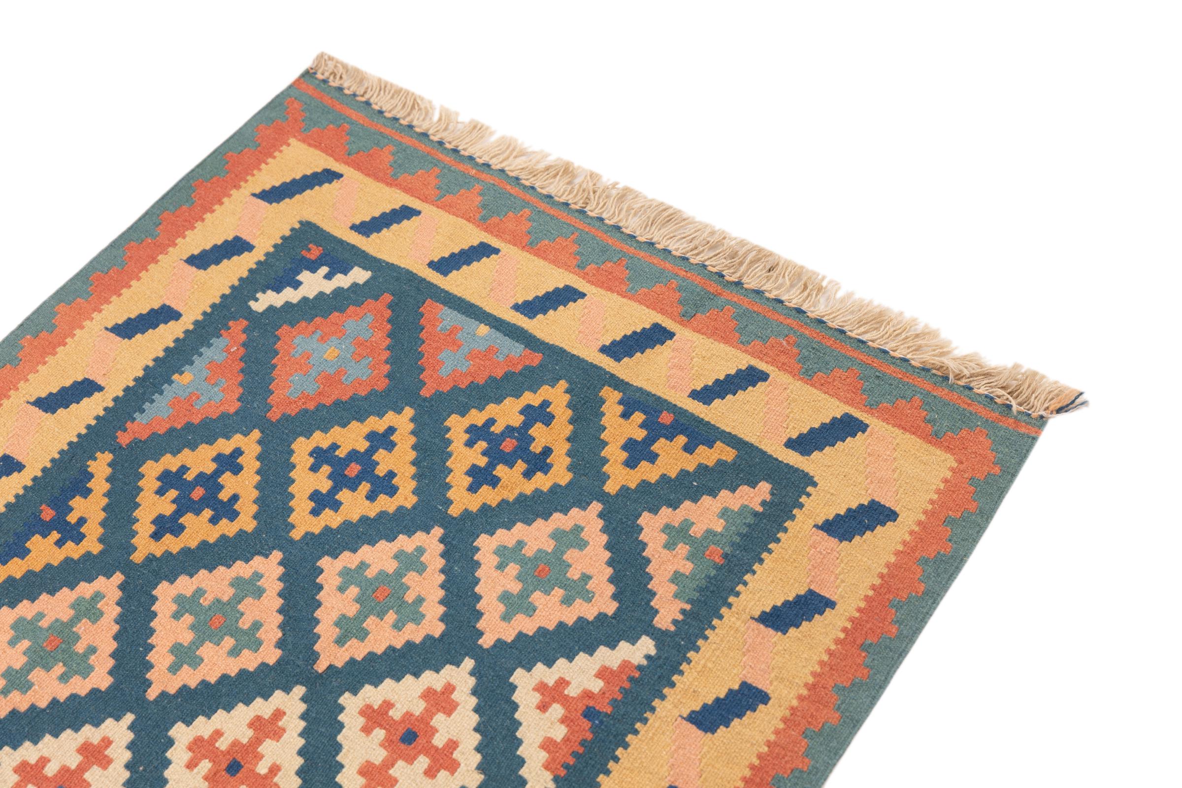 Acest Chilim fars țesut manual combină modelele și ornamentele persane cu tradiția țesăturilor plate. O combinație grozavă și modernă a celor mai populare concepte ale Orientului. Acest lucru creează un covor cu o gamă largă de utilizări. Fie ca o cuvertura de pat, fie ca un covor in fata canapelei – un kilim Fars face posibil acest lucru si poate fi gasit acum in cele mai cunoscute reviste de design interior. Covoarele Kilim Fars sunt țesute manual în Iran și, prin urmare, se numără printre kilimurile de cea mai înaltă calitate.
