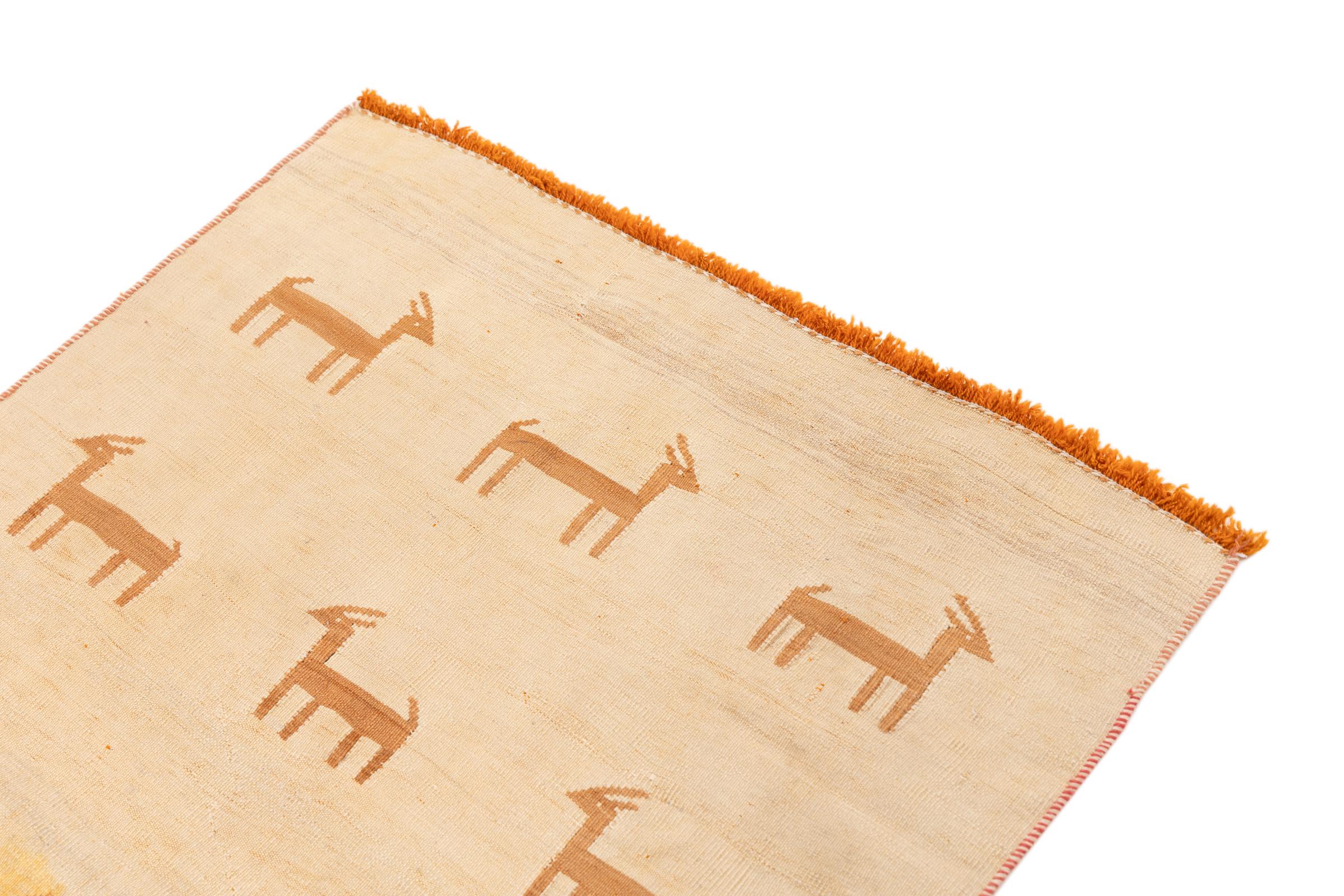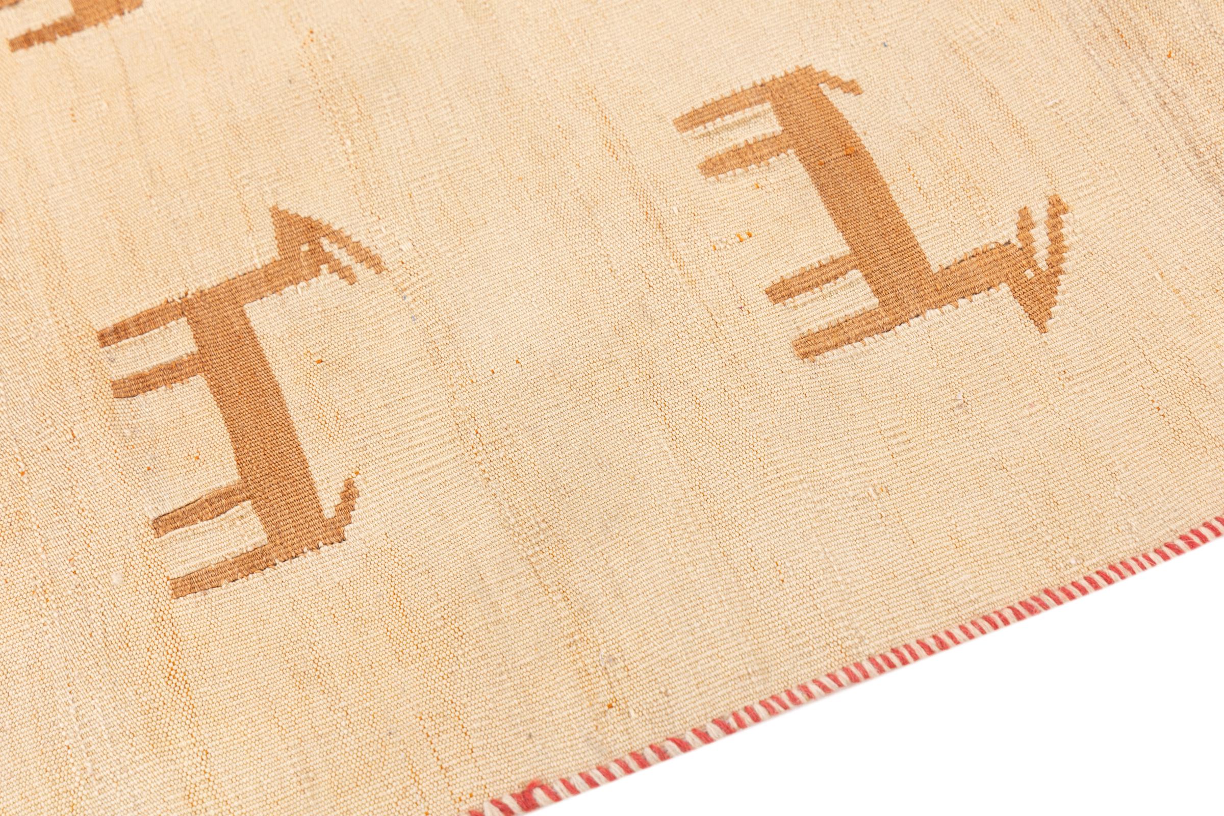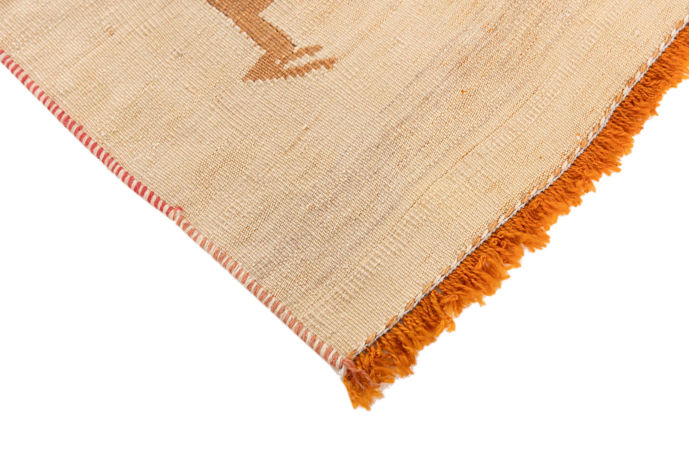 Acest Chilim fars țesut manual combină modelele și ornamentele persane cu tradiția țesăturilor plate. O combinație grozavă și modernă a celor mai populare concepte ale Orientului. Acest lucru creează un covor cu o gamă largă de utilizări. Fie ca o cuvertura de pat, fie ca un covor in fata canapelei – un kilim Fars face posibil acest lucru si poate fi gasit acum in cele mai cunoscute reviste de design interior. Covoarele Kilim Fars sunt țesute manual în Iran și, prin urmare, se numără printre kilimurile de cea mai înaltă calitate.