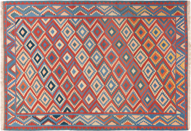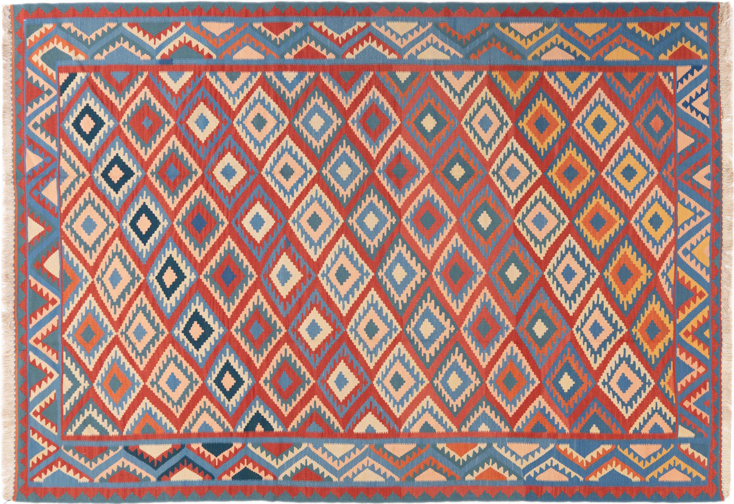 Acest Chilim fars țesut manual combină modelele și ornamentele persane cu tradiția țesăturilor plate. O combinație grozavă și modernă a celor mai populare concepte ale Orientului. Acest lucru creează un covor cu o gamă largă de utilizări. Fie ca o cuvertura de pat, fie ca un covor in fata canapelei – un kilim Fars face posibil acest lucru si poate fi gasit acum in cele mai cunoscute reviste de design interior. Covoarele Kilim Fars sunt țesute manual în Iran și, prin urmare, se numără printre kilimurile de cea mai înaltă calitate.