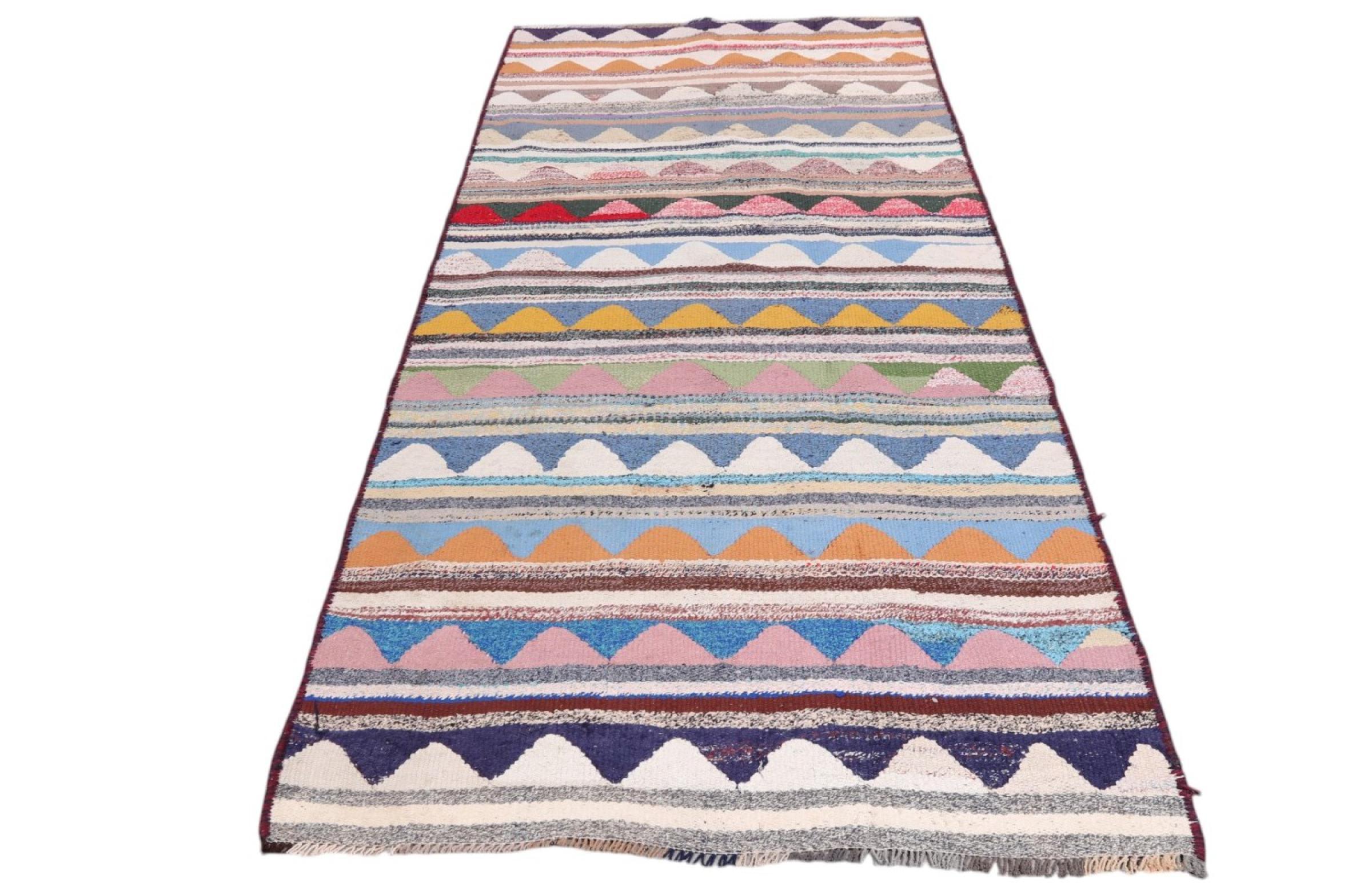 Acest covor este realizat manual ca o țesătură plată pe un războaie de țesut. Țesăturile plate sunt covoare care nu au o grămadă. După cum promite și numele, aceste covoare sunt țesute și nu înnodate. Rezultă un covor plat cu o suprafață texturată. Țesăturile plate nu sunt la fel de moi și de obicei mai subțiri decât covoarele înnodate. În același timp, sunt mult mai puțin complexe de fabricat și pot fi, de obicei, așezate din ambele părți (față și spate). Modelele lor sunt de obicei geometrice, ceea ce se datorează țesăturii.