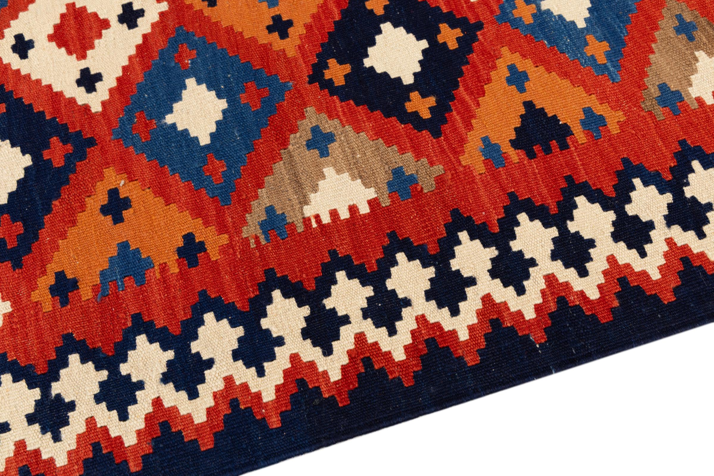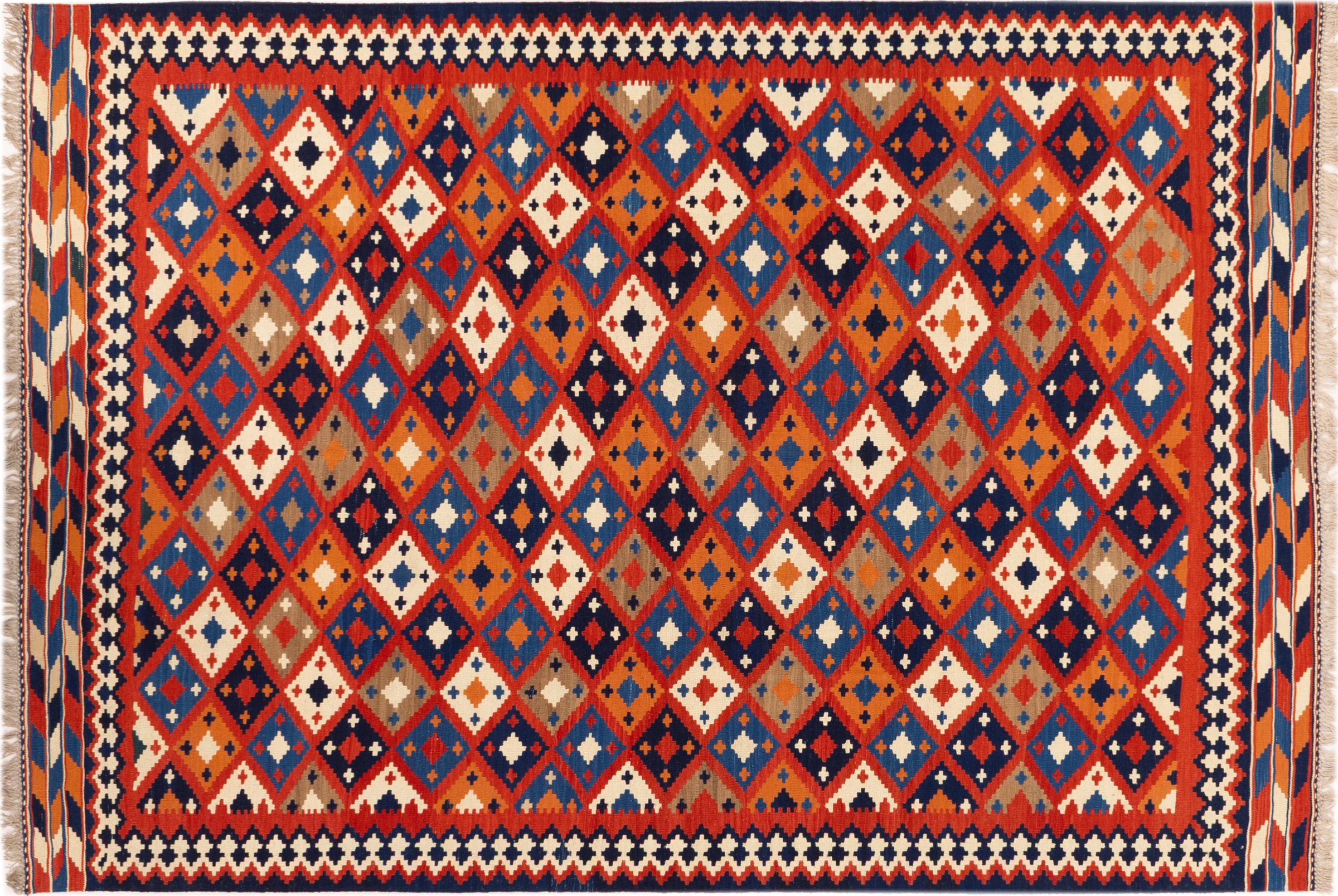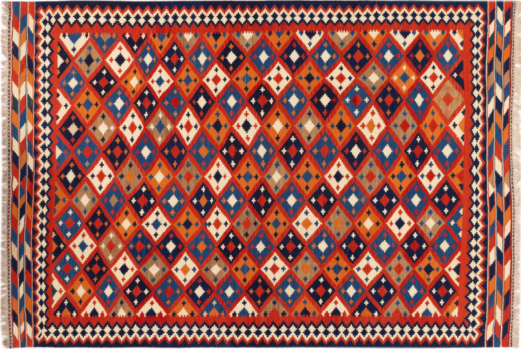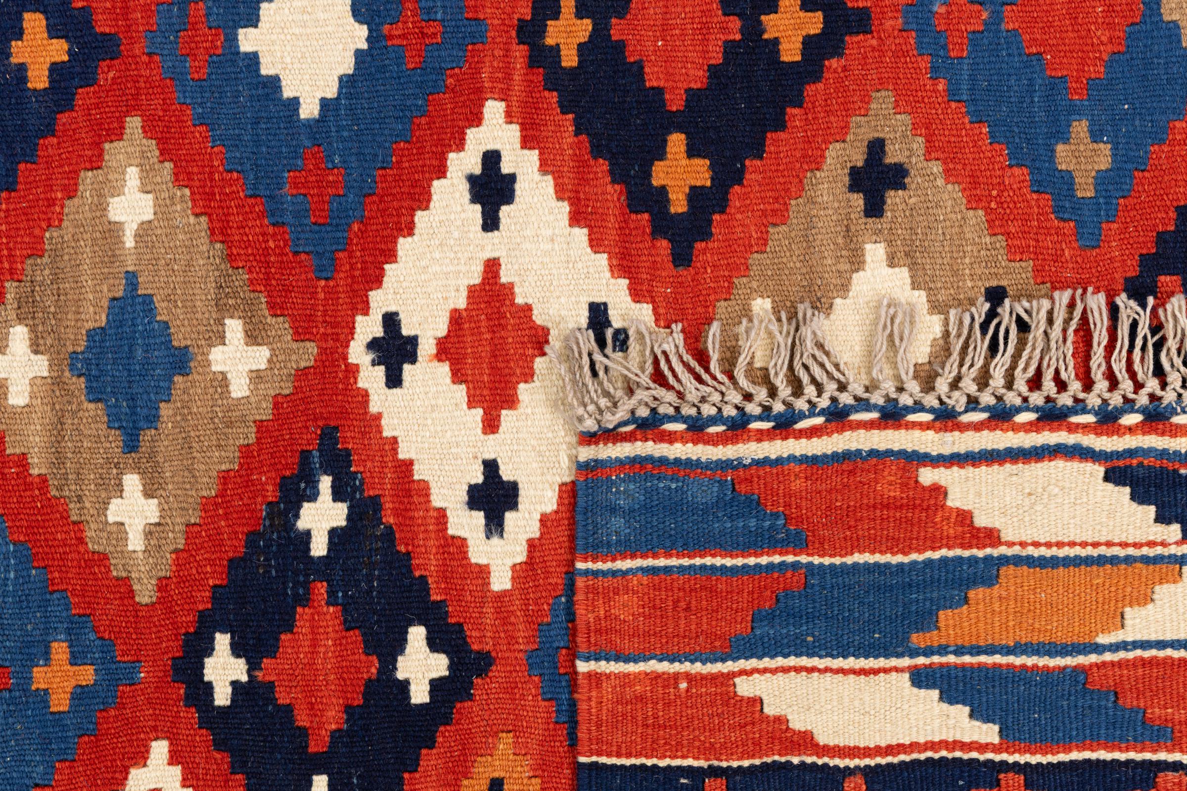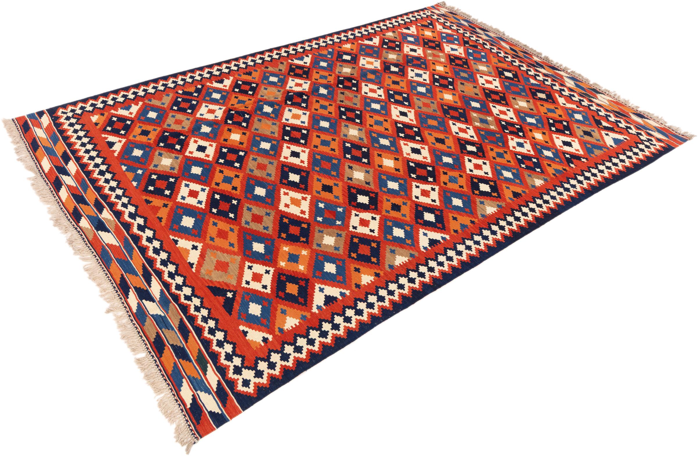 Acest Chilim fars țesut manual combină modelele și ornamentele persane cu tradiția țesăturilor plate. O combinație grozavă și modernă a celor mai populare concepte ale Orientului. Acest lucru creează un covor cu o gamă largă de utilizări. Fie ca o cuvertura de pat, fie ca un covor in fata canapelei – un kilim Fars face posibil acest lucru si poate fi gasit acum in cele mai cunoscute reviste de design interior. Covoarele Kilim Fars sunt țesute manual în Iran și, prin urmare, se numără printre kilimurile de cea mai înaltă calitate.