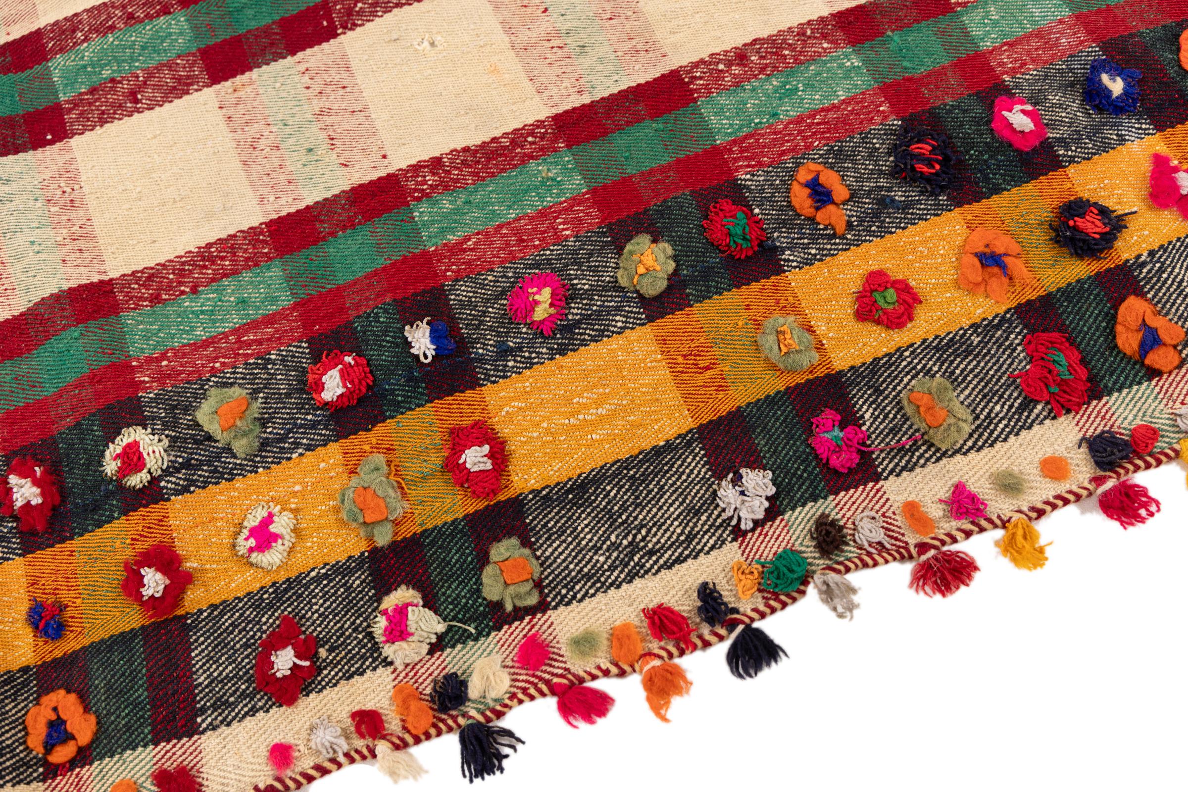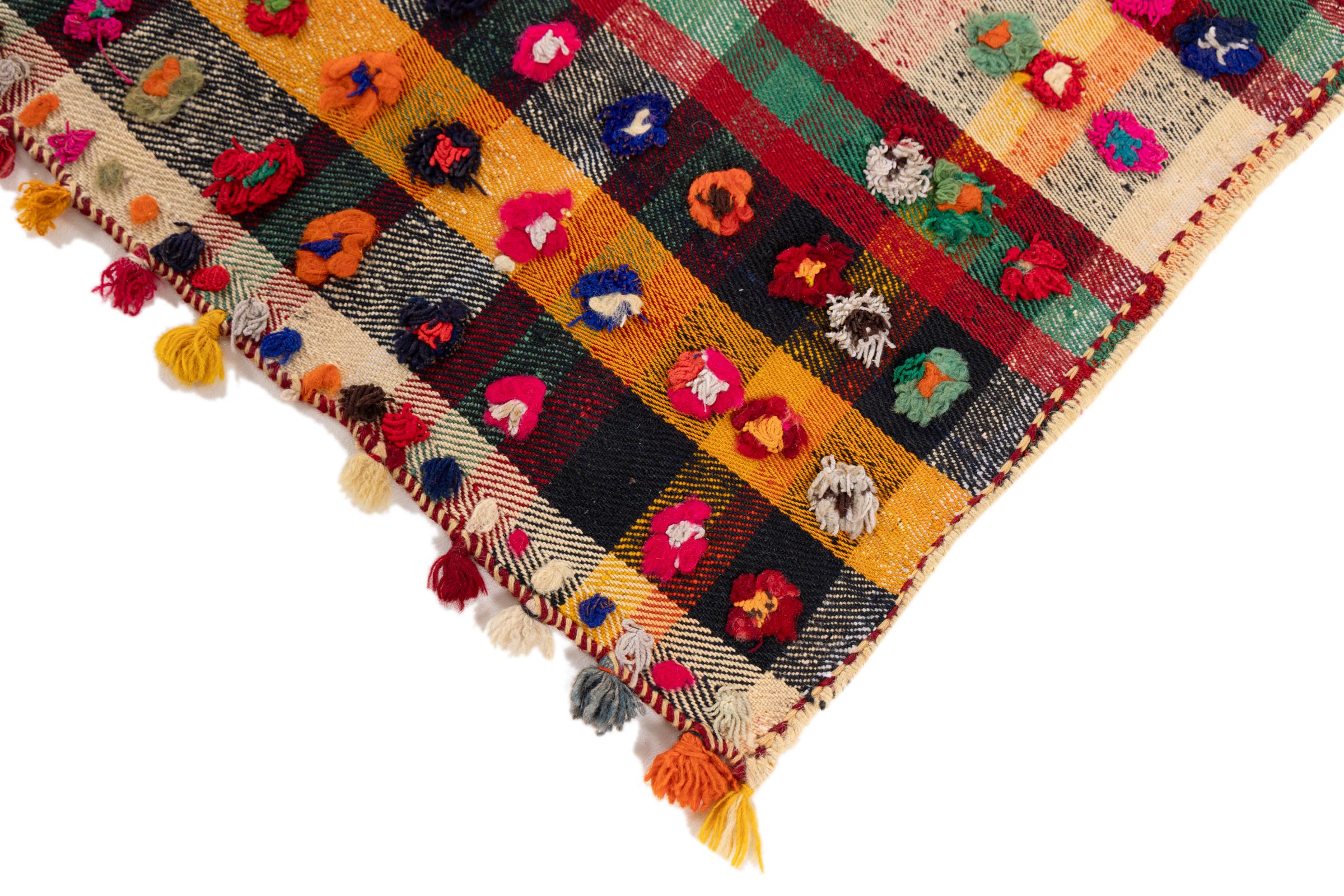 Acest covor este realizat manual ca o țesătură plată pe un războaie de țesut. Țesăturile plate sunt covoare care nu au o grămadă. După cum promite și numele, aceste covoare sunt țesute și nu înnodate. Rezultă un covor plat cu o suprafață texturată. Țesăturile plate nu sunt la fel de moi și de obicei mai subțiri decât covoarele înnodate. În același timp, sunt mult mai puțin complexe de fabricat și pot fi, de obicei, așezate din ambele părți (față și spate). Modelele lor sunt de obicei geometrice, ceea ce se datorează țesăturii.