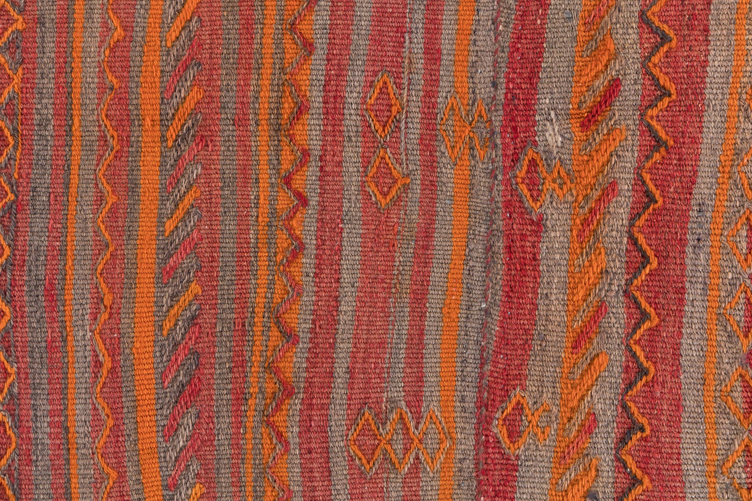 Acest Chilim fars țesut manual combină modelele și ornamentele persane cu tradiția țesăturilor plate. O combinație grozavă și modernă a celor mai populare concepte ale Orientului. Acest lucru creează un covor cu o gamă largă de utilizări. Fie ca o cuvertura de pat, fie ca un covor in fata canapelei – un kilim Fars face posibil acest lucru si poate fi gasit acum in cele mai cunoscute reviste de design interior. Covoarele Kilim Fars sunt țesute manual în Iran și, prin urmare, se numără printre kilimurile de cea mai înaltă calitate.