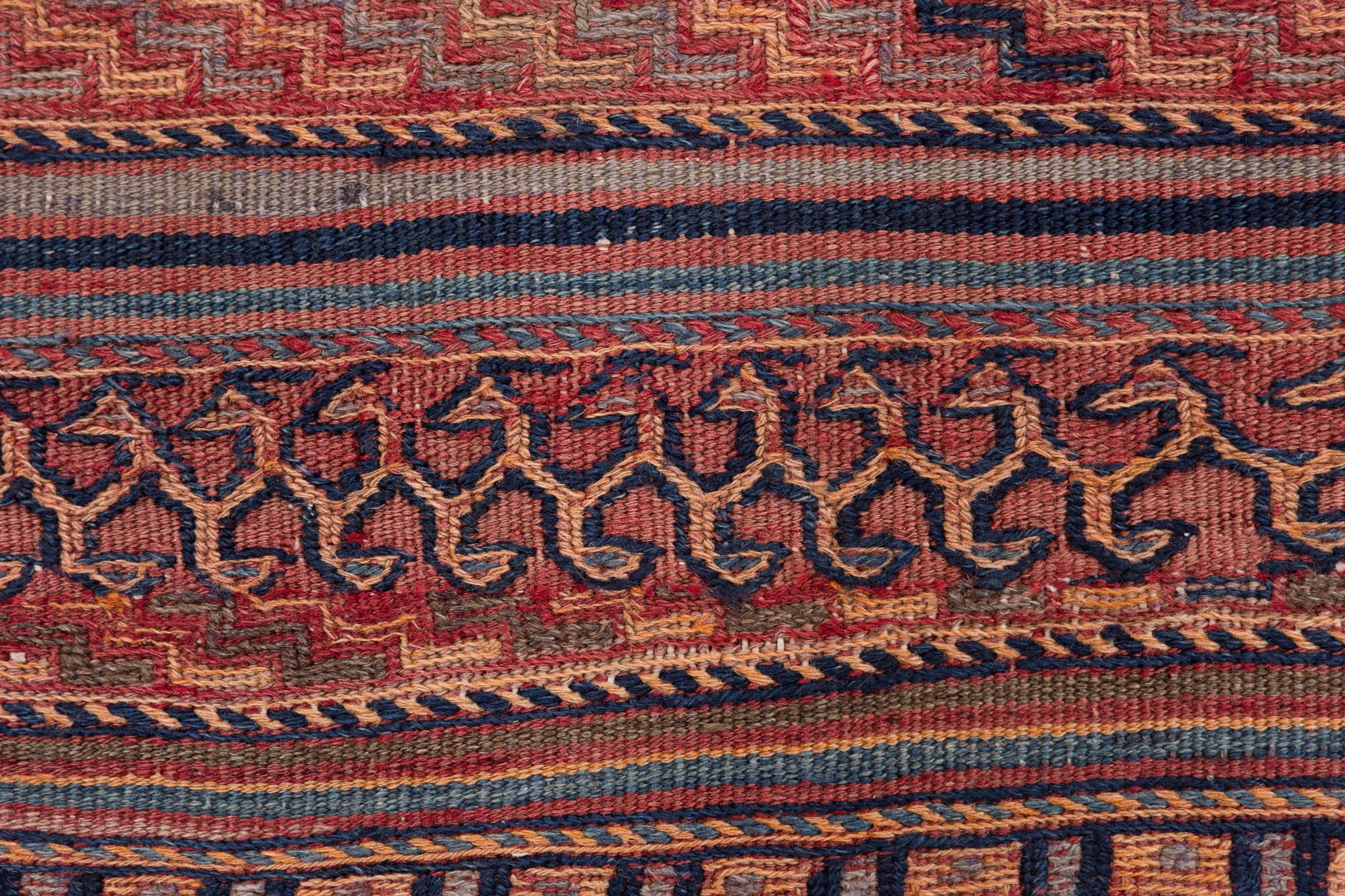 Acest Chilim fars țesut manual combină modelele și ornamentele persane cu tradiția țesăturilor plate. O combinație grozavă și modernă a celor mai populare concepte ale Orientului. Acest lucru creează un covor cu o gamă largă de utilizări. Fie ca o cuvertura de pat, fie ca un covor in fata canapelei – un kilim Fars face posibil acest lucru si poate fi gasit acum in cele mai cunoscute reviste de design interior. Covoarele Kilim Fars sunt țesute manual în Iran și, prin urmare, se numără printre kilimurile de cea mai înaltă calitate.
