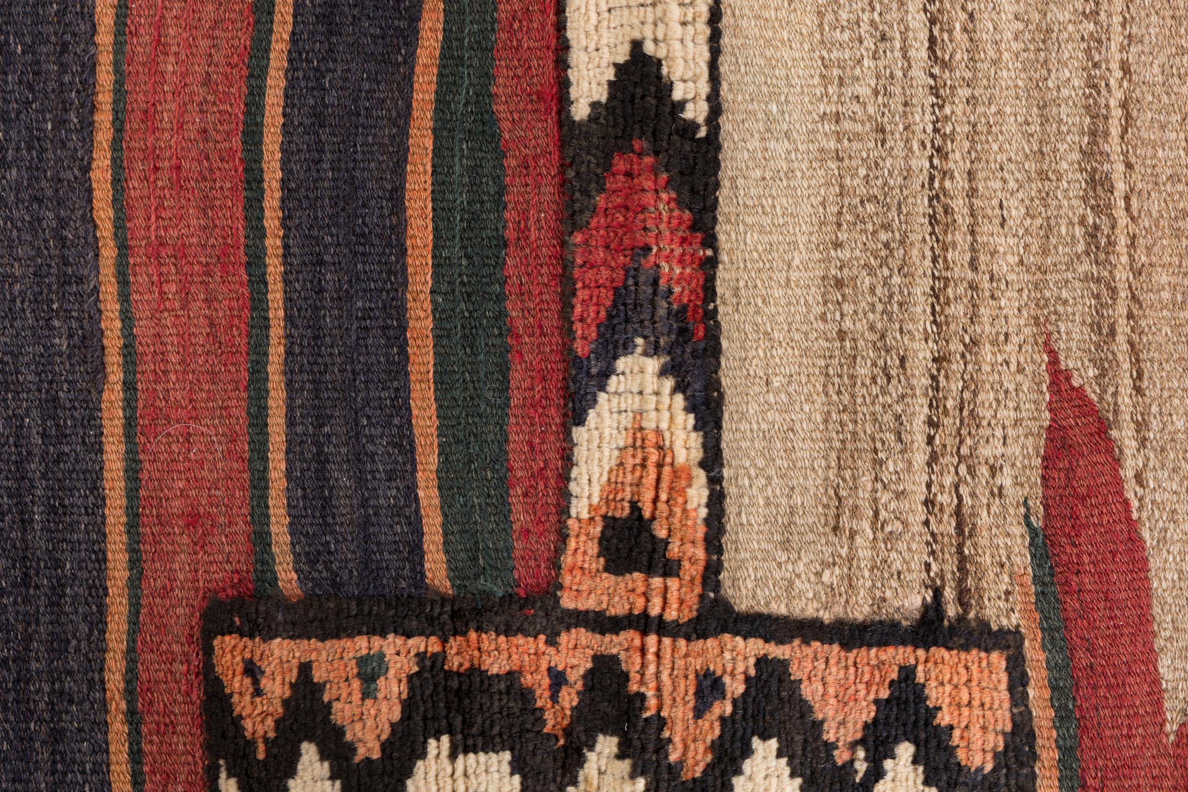 Acest Chilim fars țesut manual combină modelele și ornamentele persane cu tradiția țesăturilor plate. O combinație grozavă și modernă a celor mai populare concepte ale Orientului. Acest lucru creează un covor cu o gamă largă de utilizări. Fie ca o cuvertura de pat, fie ca un covor in fata canapelei – un kilim Fars face posibil acest lucru si poate fi gasit acum in cele mai cunoscute reviste de design interior. Covoarele Kilim Fars sunt țesute manual în Iran și, prin urmare, se numără printre kilimurile de cea mai înaltă calitate.