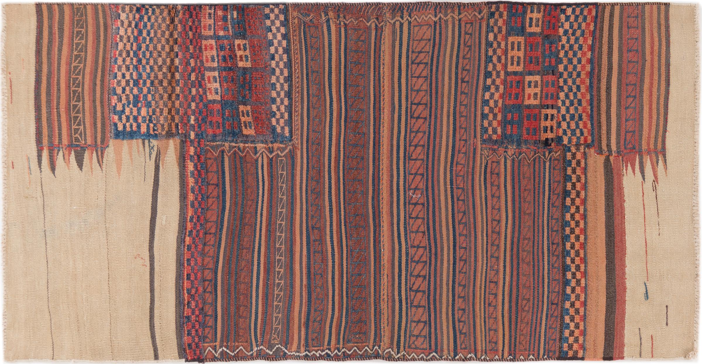 Acest covor este realizat manual ca o țesătură plată pe un războaie de țesut. Țesăturile plate sunt covoare care nu au o grămadă. După cum promite și numele, aceste covoare sunt țesute și nu înnodate. Rezultă un covor plat cu o suprafață texturată. Țesăturile plate nu sunt la fel de moi și de obicei mai subțiri decât covoarele înnodate. În același timp, sunt mult mai puțin complexe de fabricat și pot fi, de obicei, așezate din ambele părți (față și spate). Modelele lor sunt de obicei geometrice, ceea ce se datorează țesăturii.