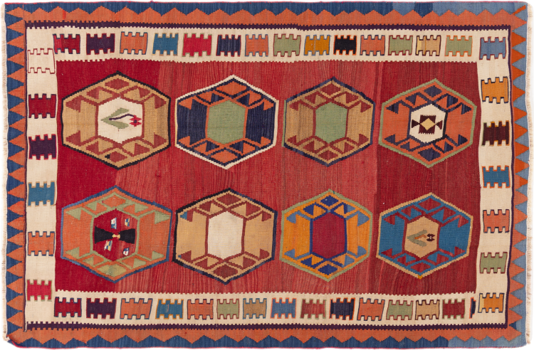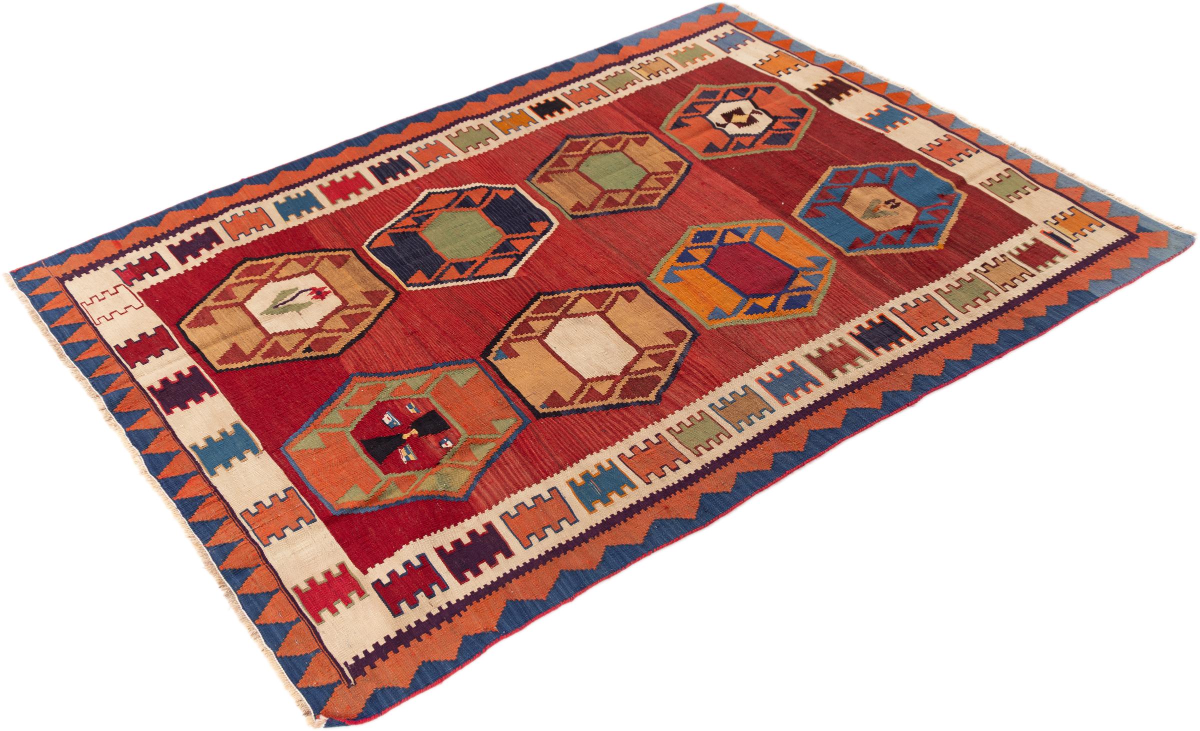 Acest Chilim fars țesut manual combină modelele și ornamentele persane cu tradiția țesăturilor plate. O combinație grozavă și modernă a celor mai populare concepte ale Orientului. Acest lucru creează un covor cu o gamă largă de utilizări. Fie ca o cuvertura de pat, fie ca un covor in fata canapelei – un kilim Fars face posibil acest lucru si poate fi gasit acum in cele mai cunoscute reviste de design interior. Covoarele Kilim Fars sunt țesute manual în Iran și, prin urmare, se numără printre kilimurile de cea mai înaltă calitate.