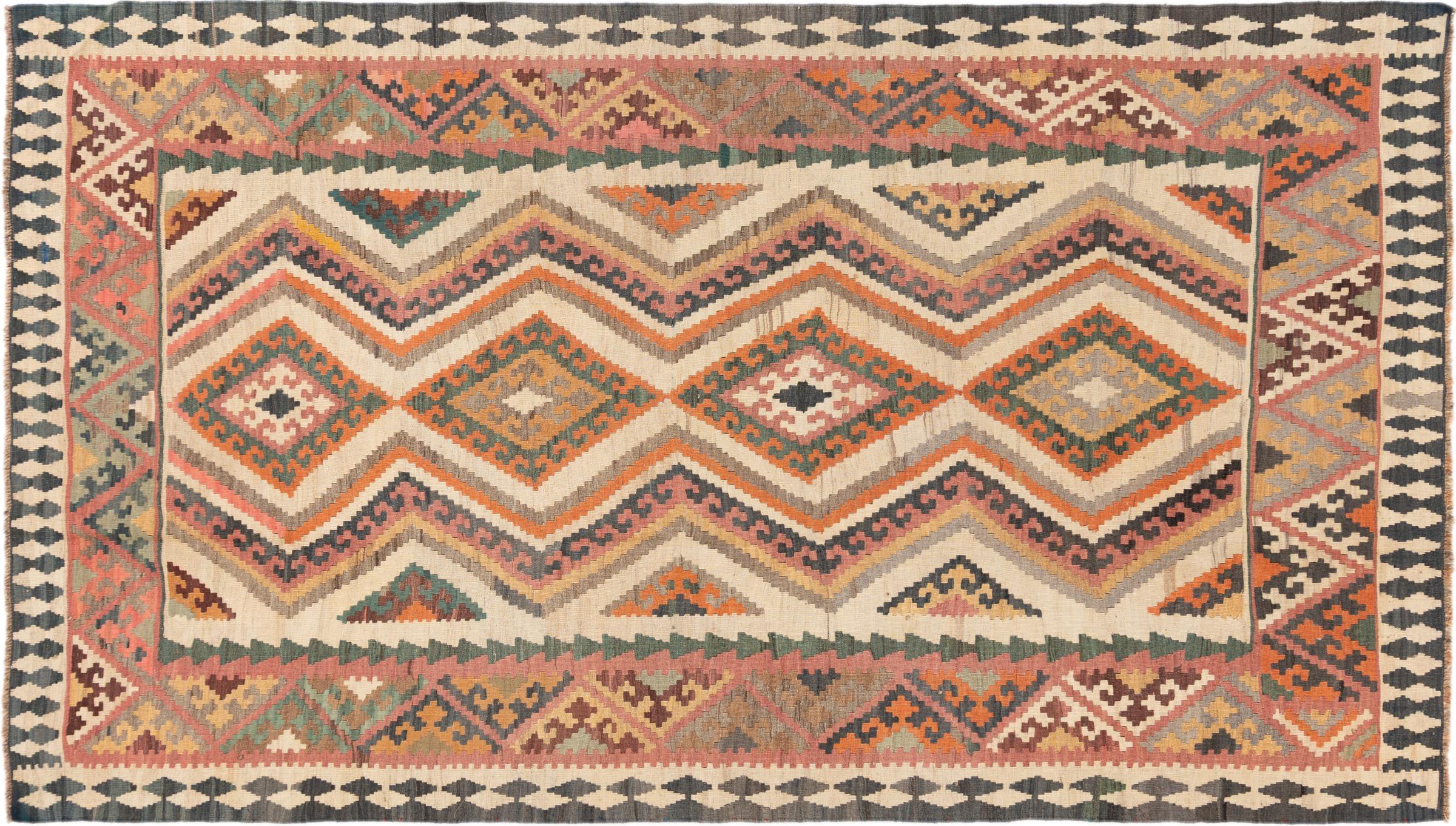 Acest Chilim fars țesut manual combină modelele și ornamentele persane cu tradiția țesăturilor plate. O combinație grozavă și modernă a celor mai populare concepte ale Orientului. Acest lucru creează un covor cu o gamă largă de utilizări. Fie ca o cuvertura de pat, fie ca un covor in fata canapelei – un kilim Fars face posibil acest lucru si poate fi gasit acum in cele mai cunoscute reviste de design interior. Covoarele Kilim Fars sunt țesute manual în Iran și, prin urmare, se numără printre kilimurile de cea mai înaltă calitate.