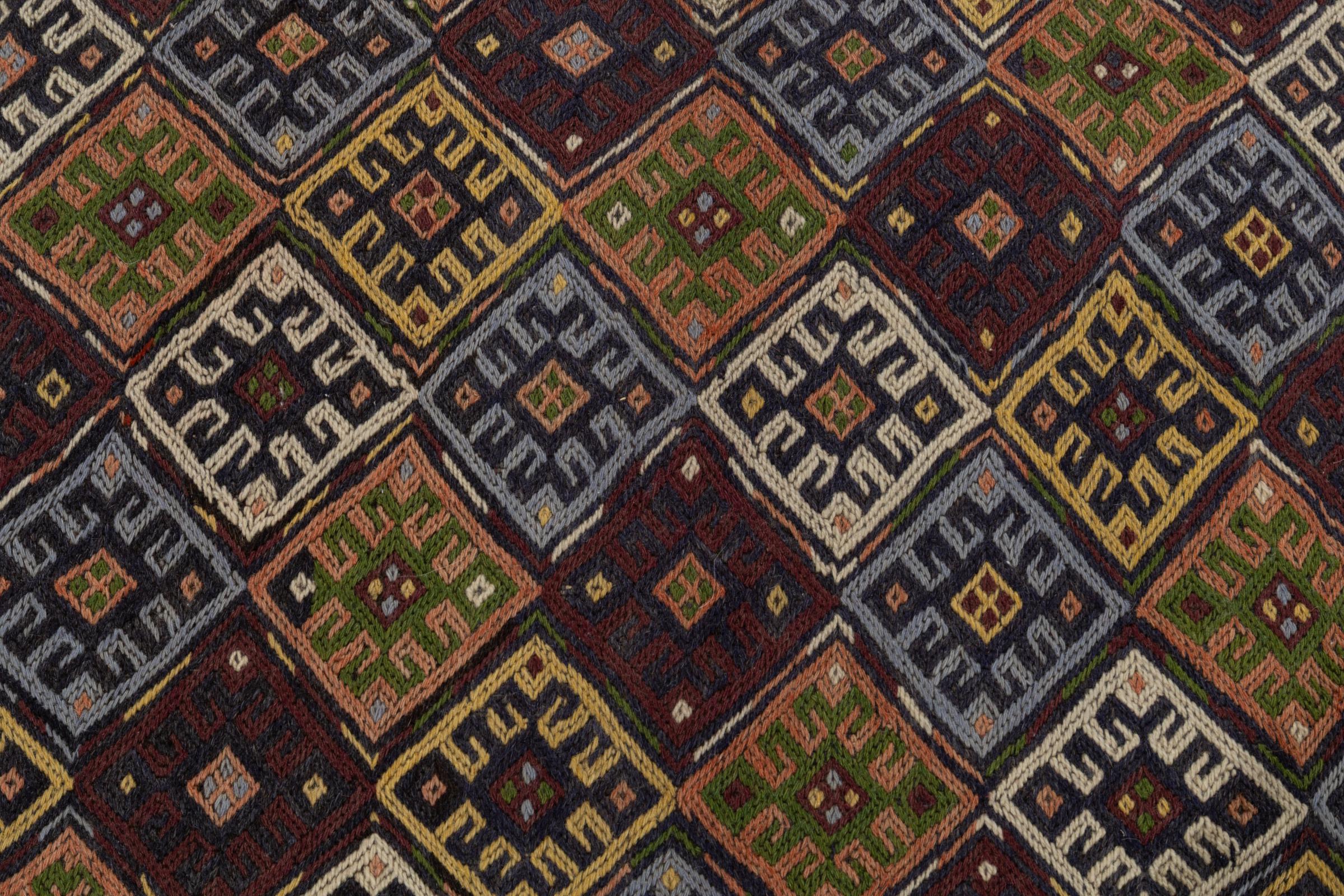Acest covor este realizat manual ca o țesătură plată pe un războaie de țesut. Țesăturile plate sunt covoare care nu au o grămadă. După cum promite și numele, aceste covoare sunt țesute și nu înnodate. Rezultă un covor plat cu o suprafață texturată. Țesăturile plate nu sunt la fel de moi și de obicei mai subțiri decât covoarele înnodate. În același timp, sunt mult mai puțin complexe de fabricat și pot fi, de obicei, așezate din ambele părți (față și spate). Modelele lor sunt de obicei geometrice, ceea ce se datorează țesăturii.