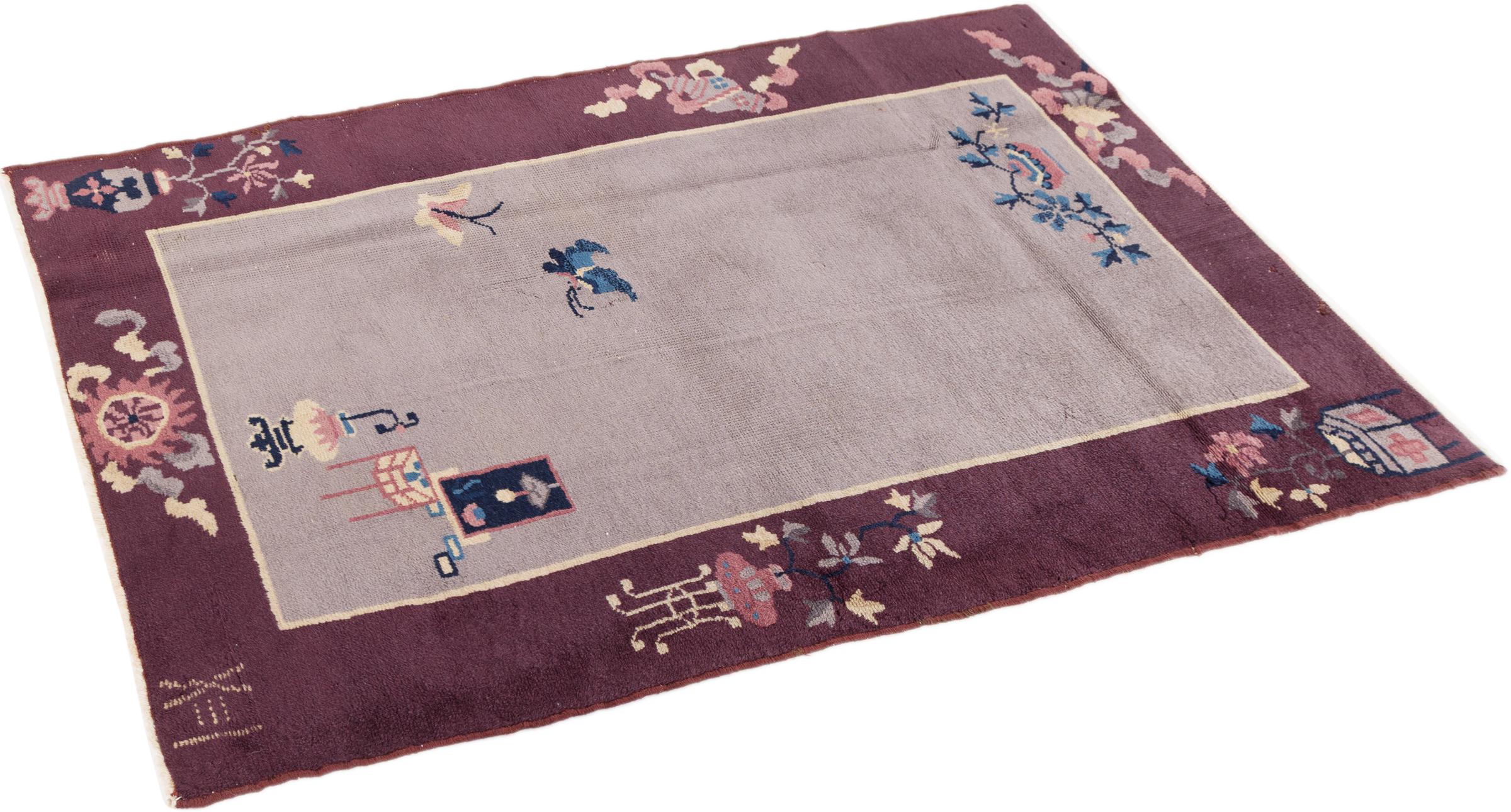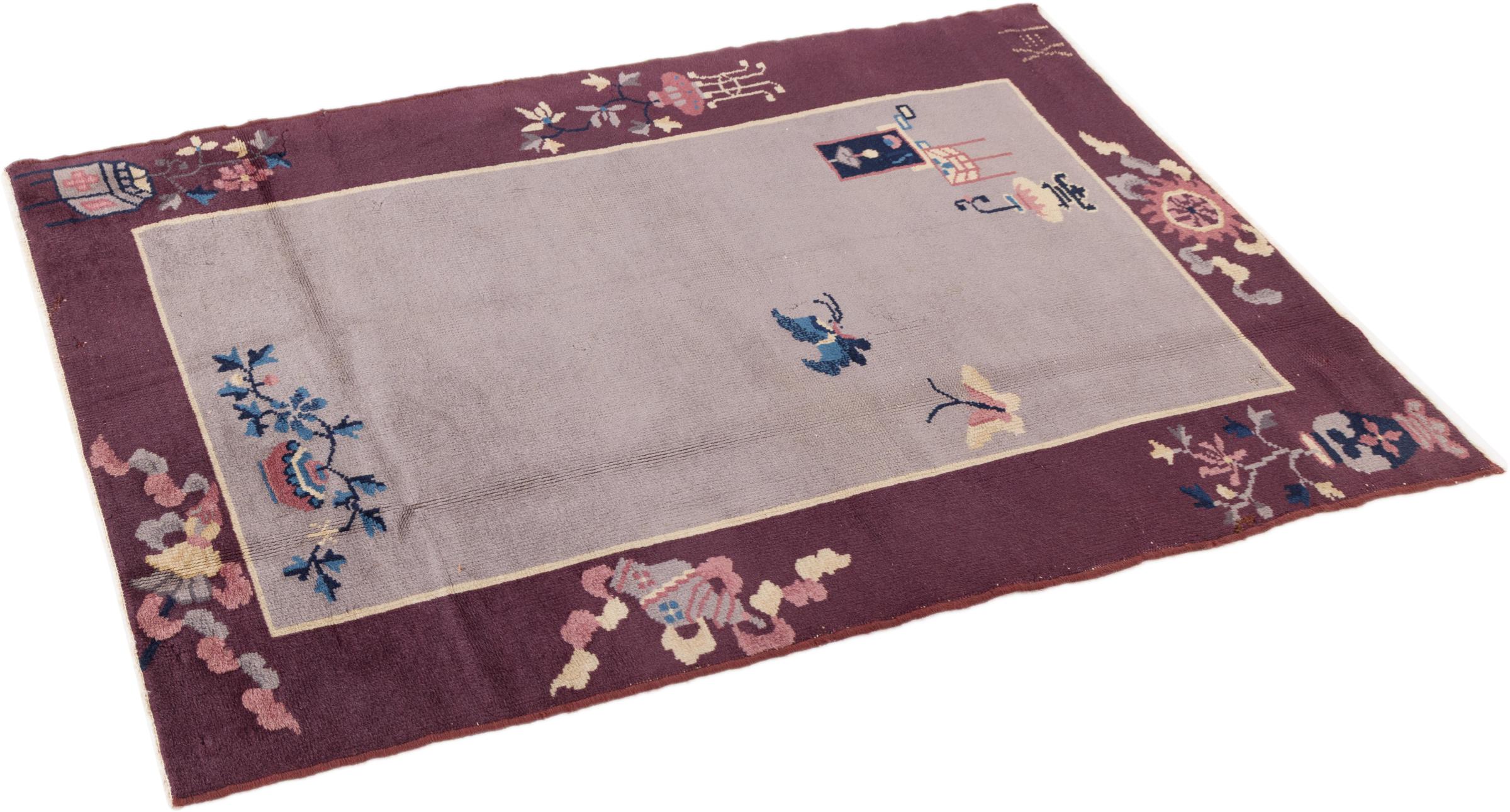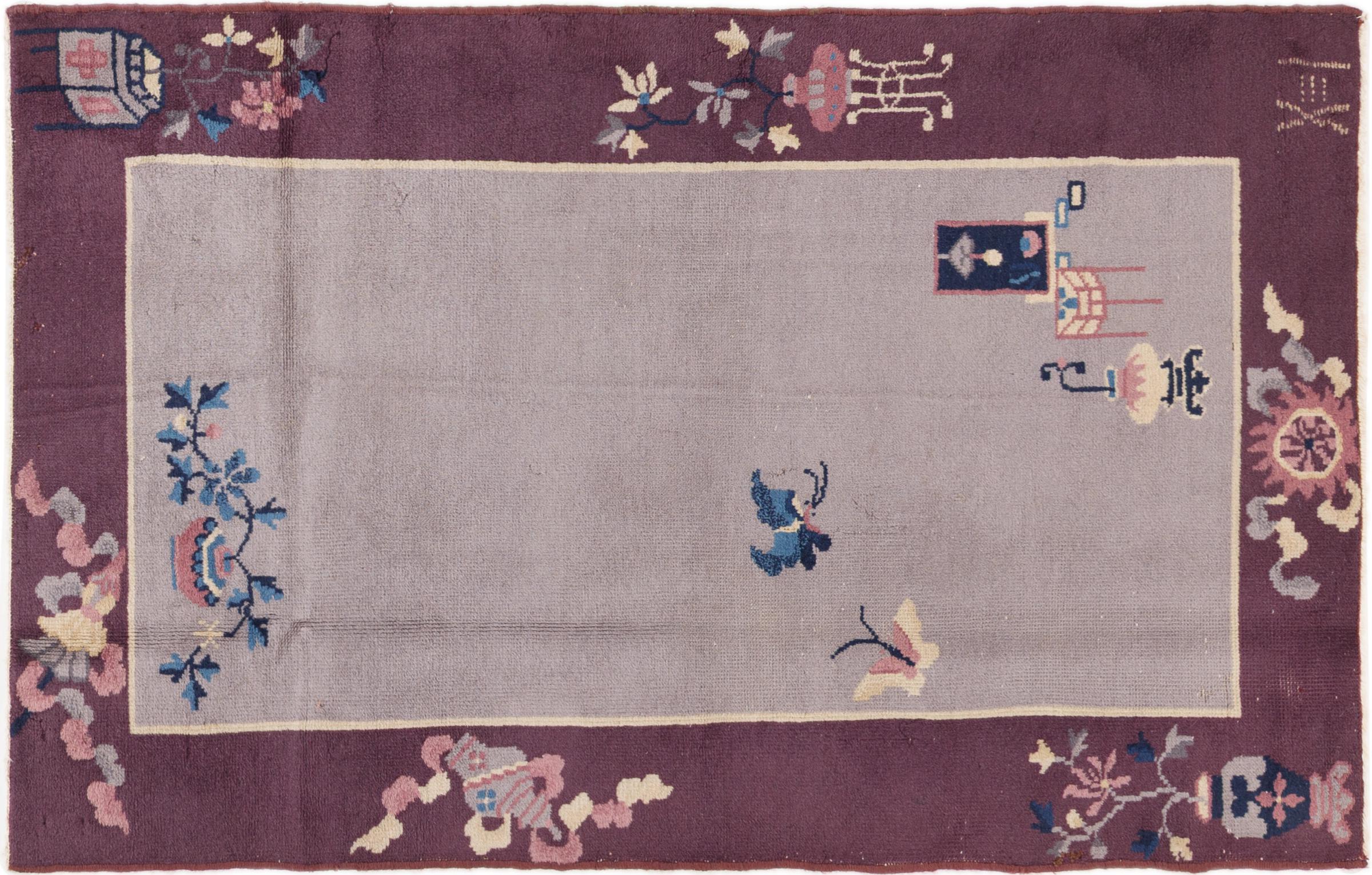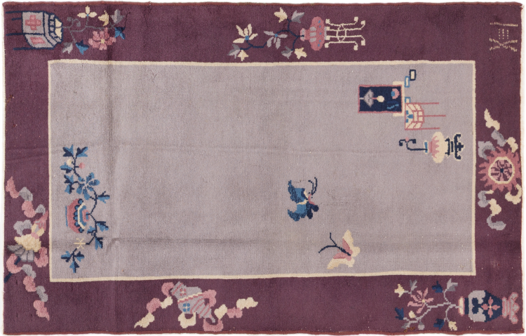 Covor Nr.: 298678004991 Mărime: 149x100 cm Grosime: cca. 12 mm Noduri: 200 000 - 250 000 / m² Prelucrare: Lucrate de mână Catifeaua: Lână toarsă manual Urzeala: Bumbac Origine: China Vechime: vechi/semi-antic, vechi de peste 50 de ani Greutate: cca. 5 kg În stoc: Unic - Doar 1 în stoc
